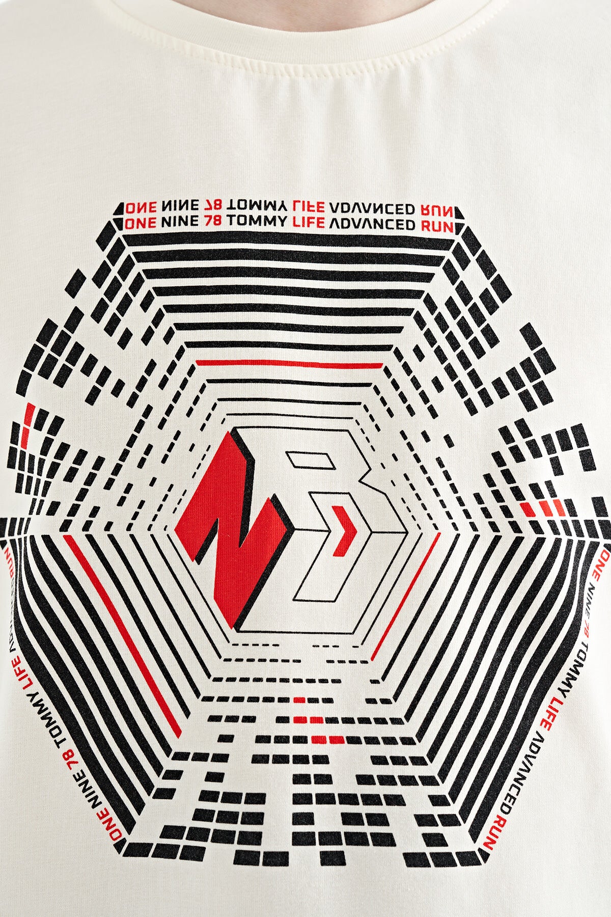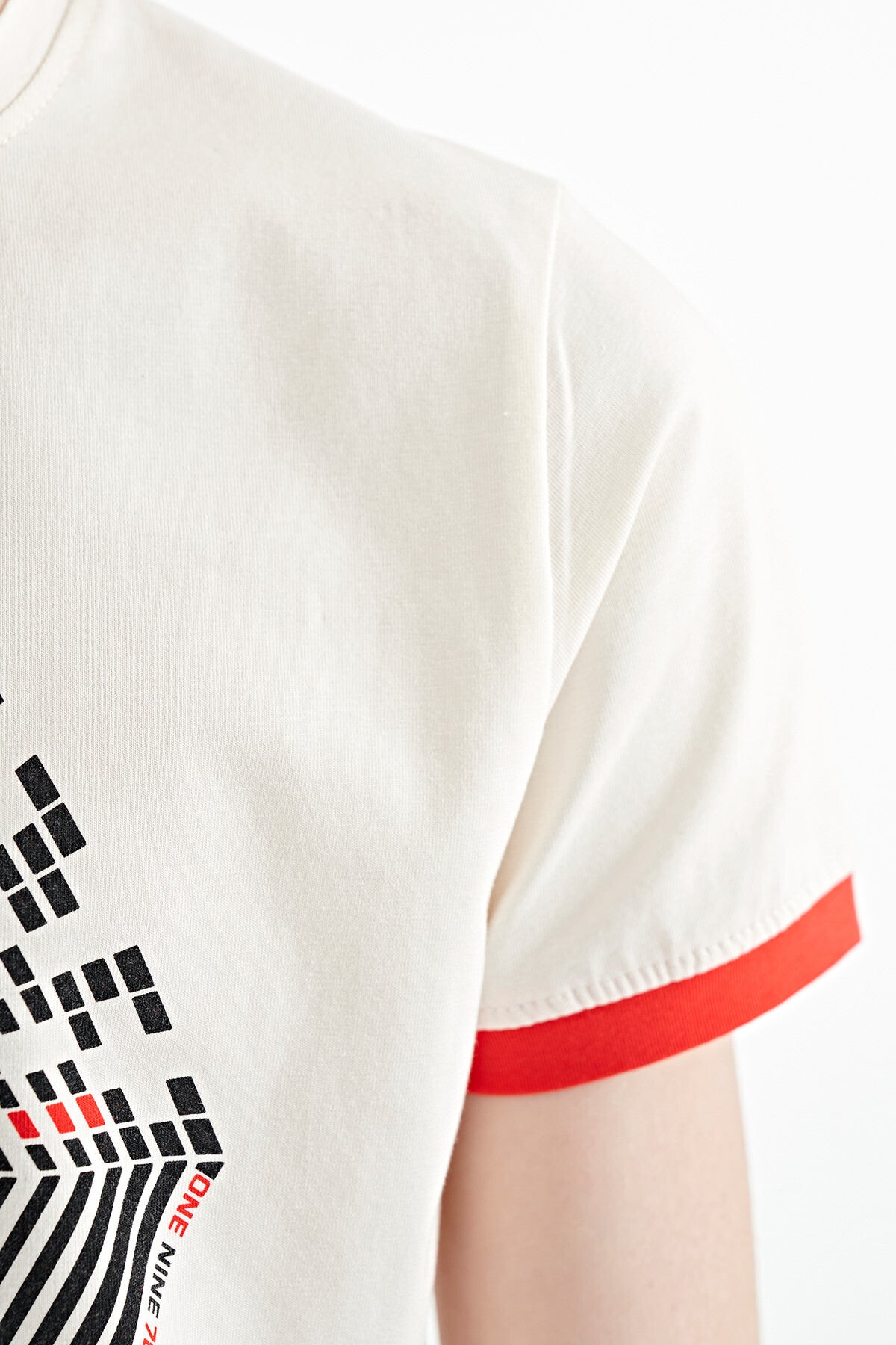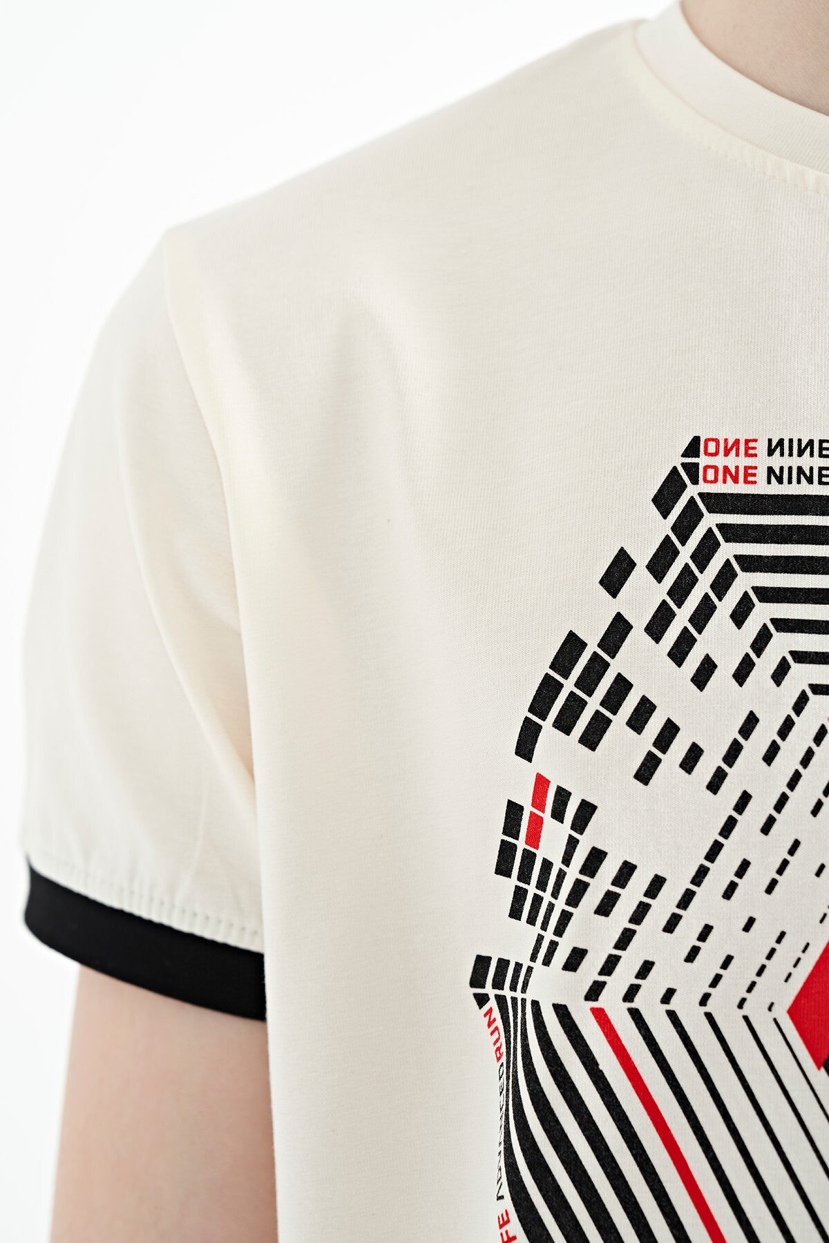 Ecru Collar Three-Color Detailed Print Standard Fit Boys' T-Shirt - 11156