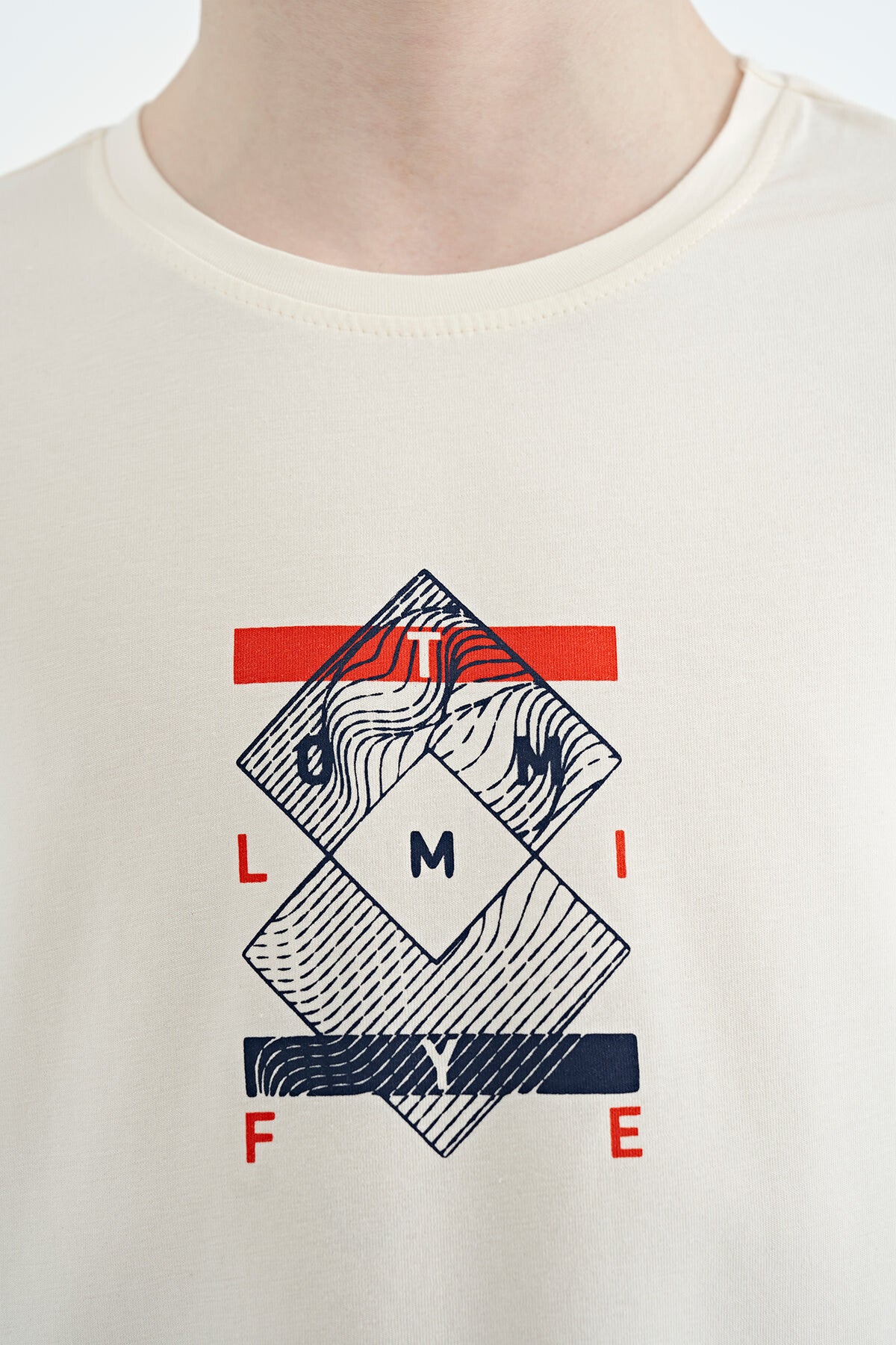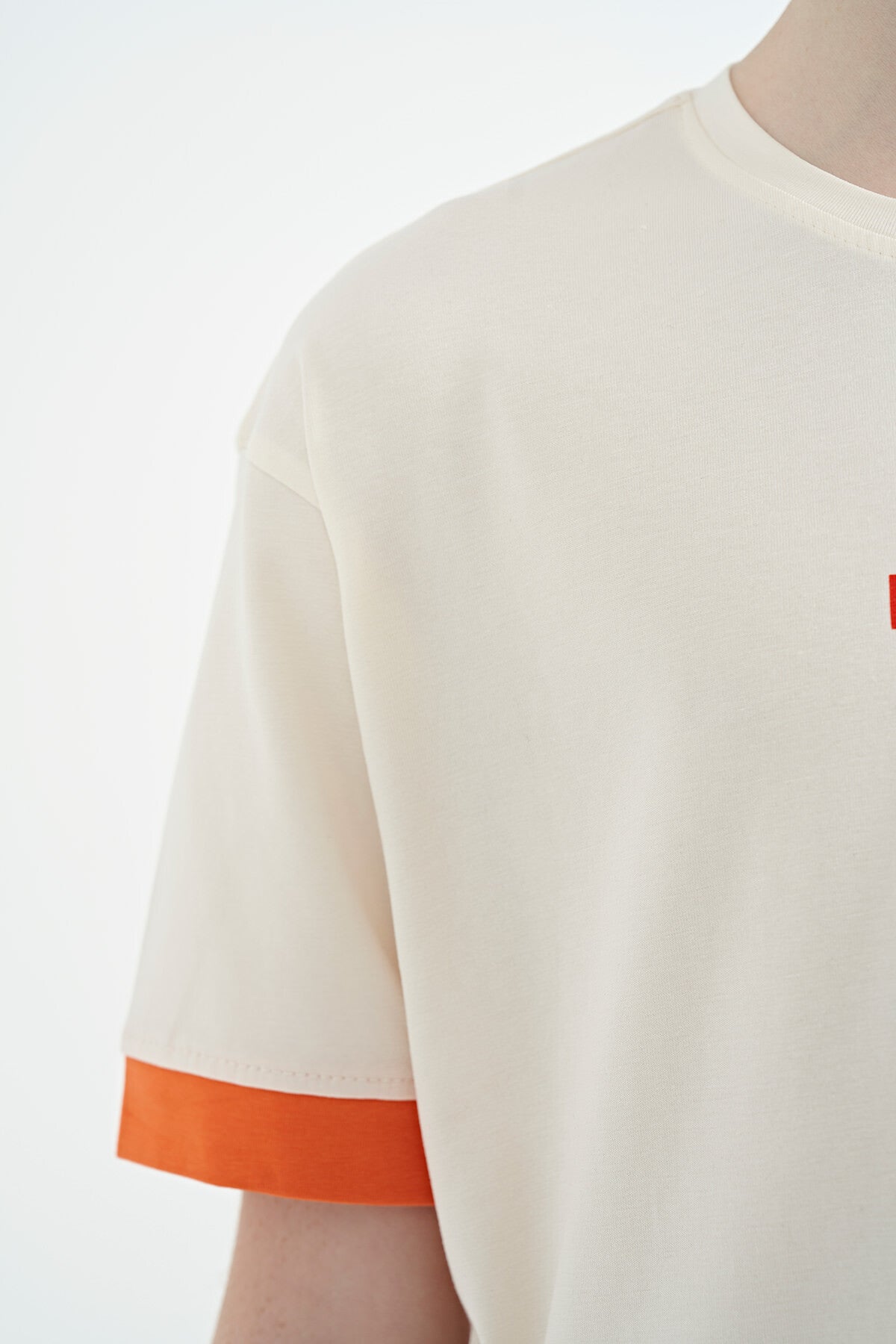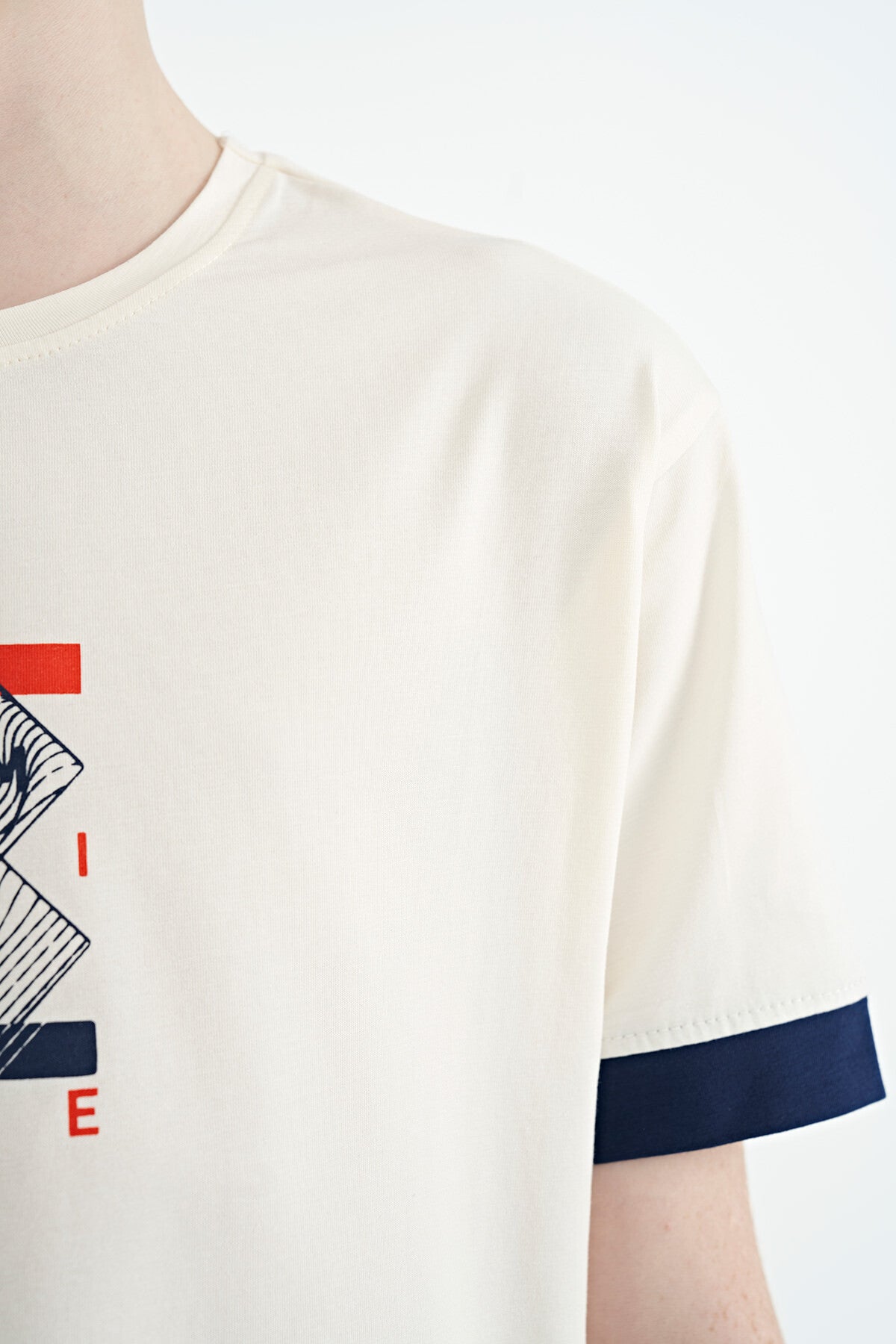 Ecru Colored Edge Detailed Printed Oversize Boys' T-Shirt - 11137