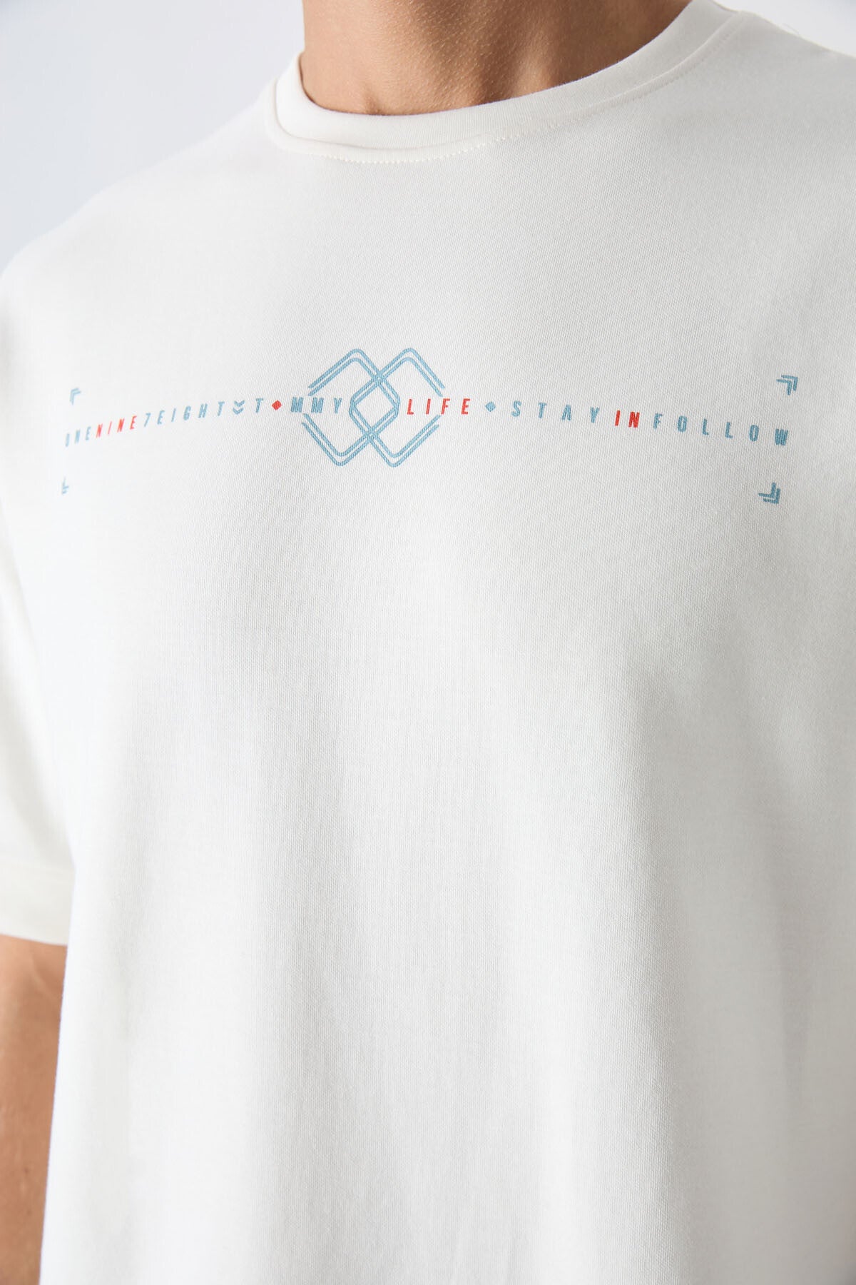 Ecru Cotton Thick Soft Textured Oversize Fit Printed Men's T-Shirt - 88323