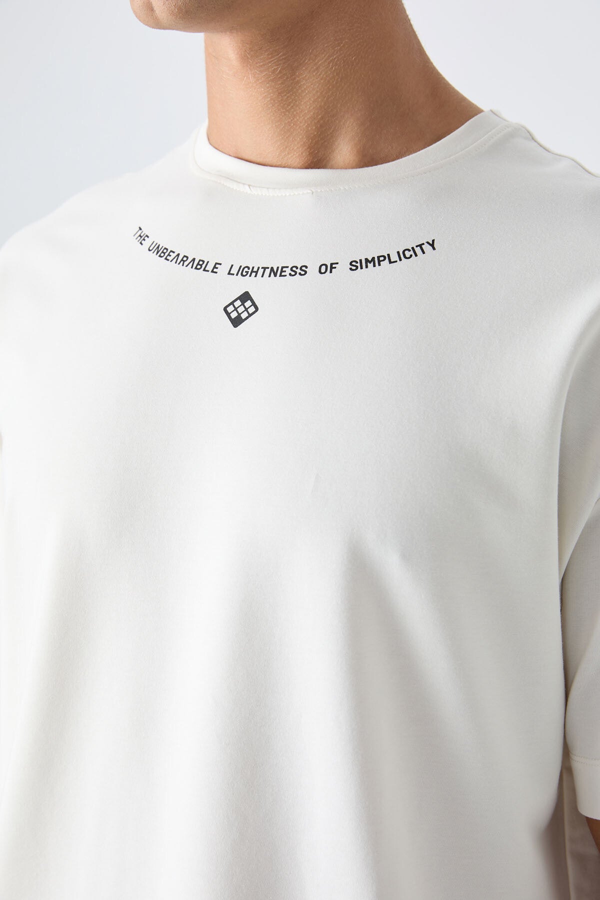 Ecru Cotton Thick Soft Textured Oversize Fit Printed Men's T-Shirt - 88343