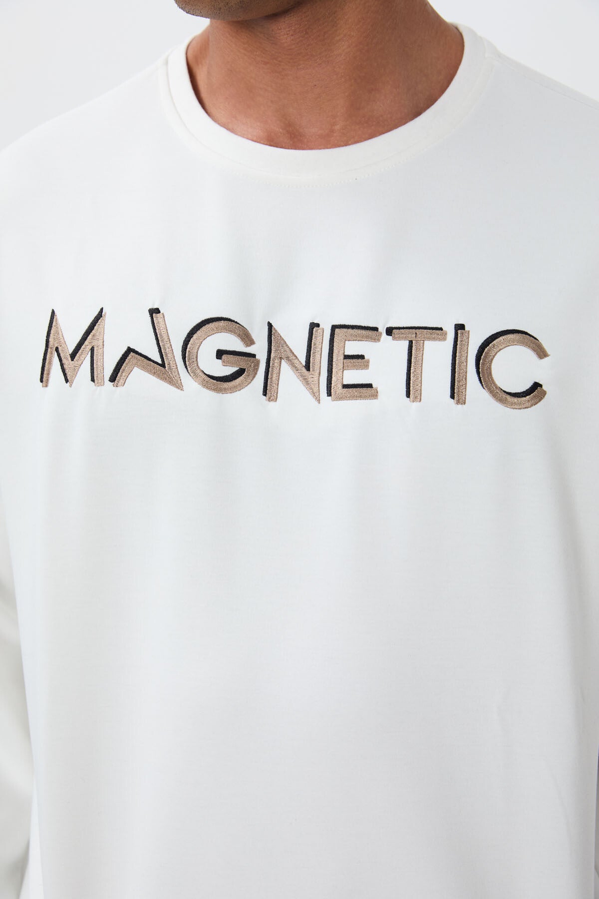 Ecru Embroidered O Collar Comfort Fit Fleece-Lined Men's Sweatshirt - 88020