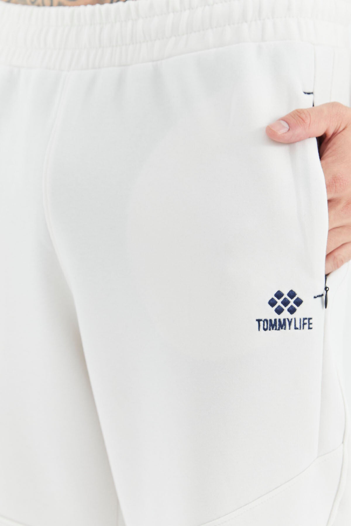 Ecru Laced Striped Detailed Relax Fit Men's Tracksuit Bottom - 82100