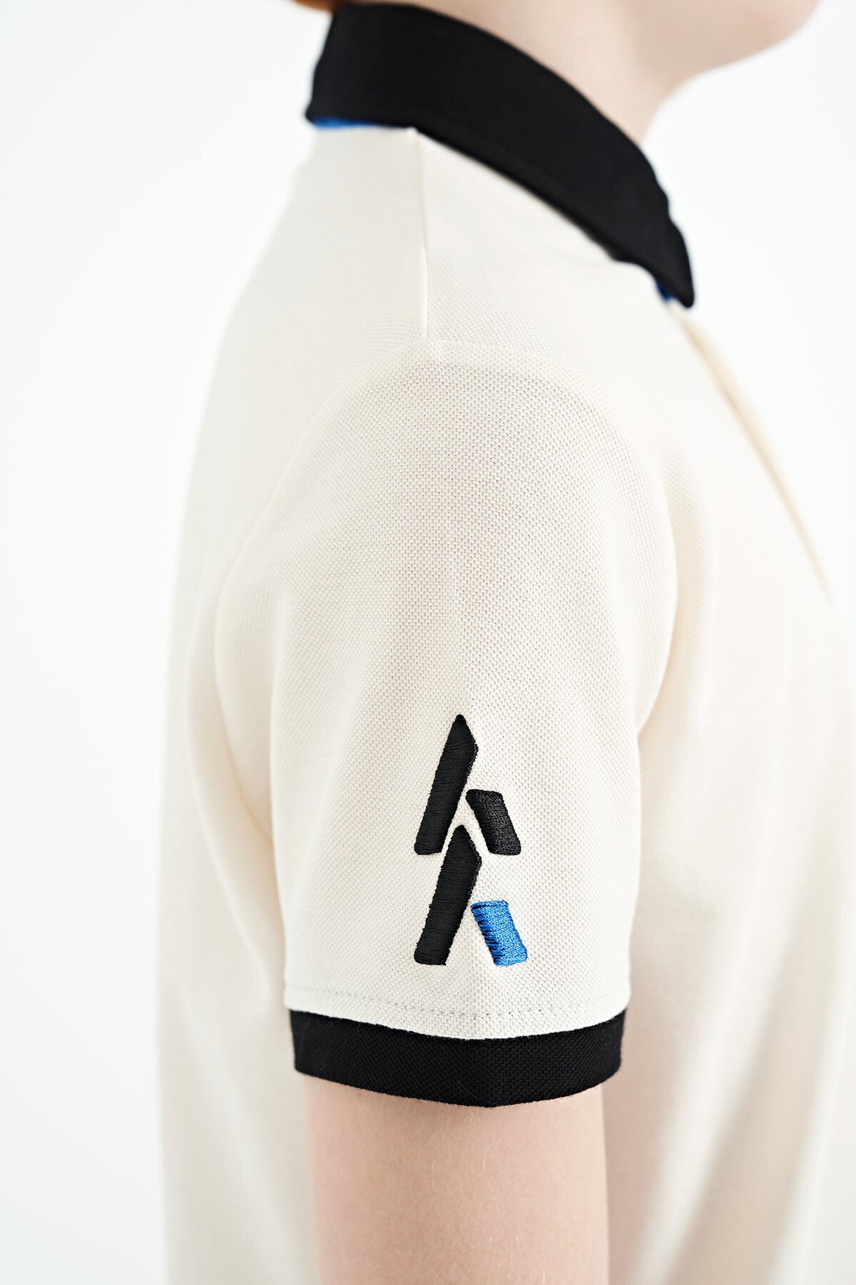 Ecru Multicolored Logo Embroidered Standard Fit Polo Collar Boys' T-Shirt - 11138