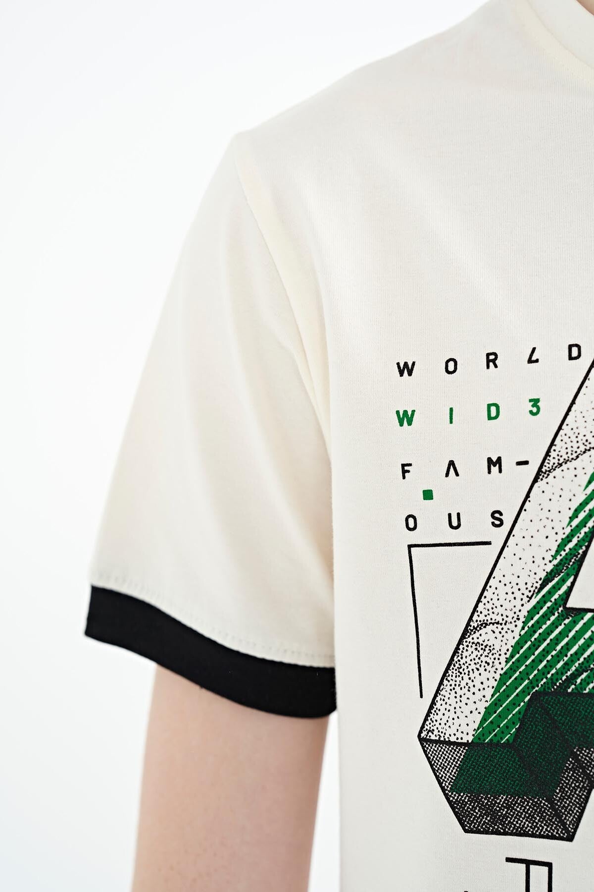 Ecru Print Standard Fit O Collar Boys T-Shirt - 11098