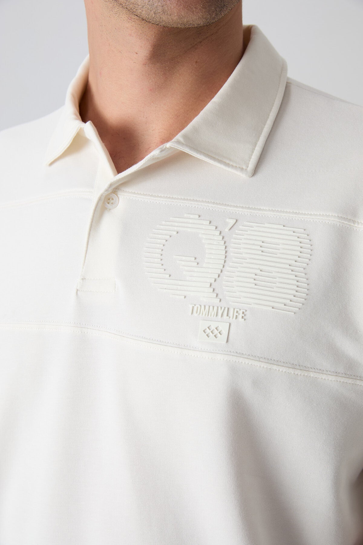 Ecru Thick Soft Textured Cotton Oversize Fit Printed Polo Collar Men's T-Shirt - 88347