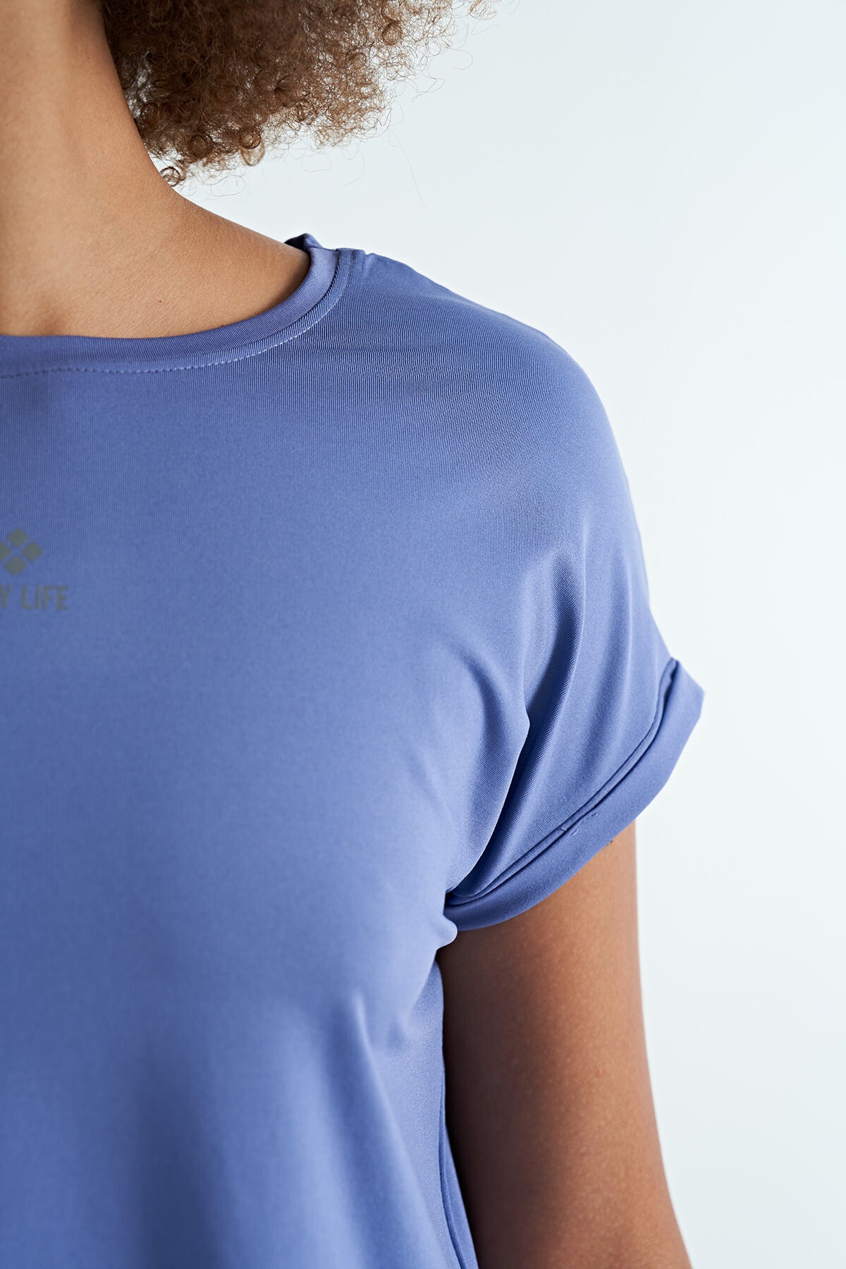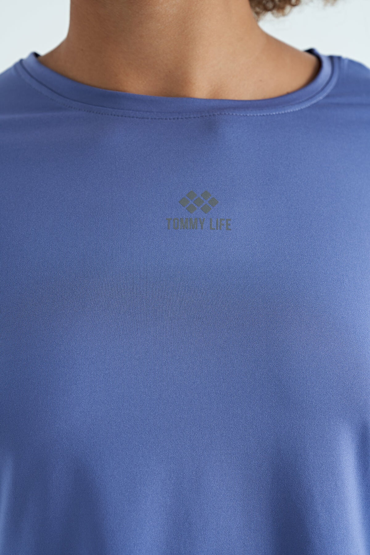 Lilac Logo Printed O Neck Sleeveless Oversize Women's Crop T-Shirt - 97262