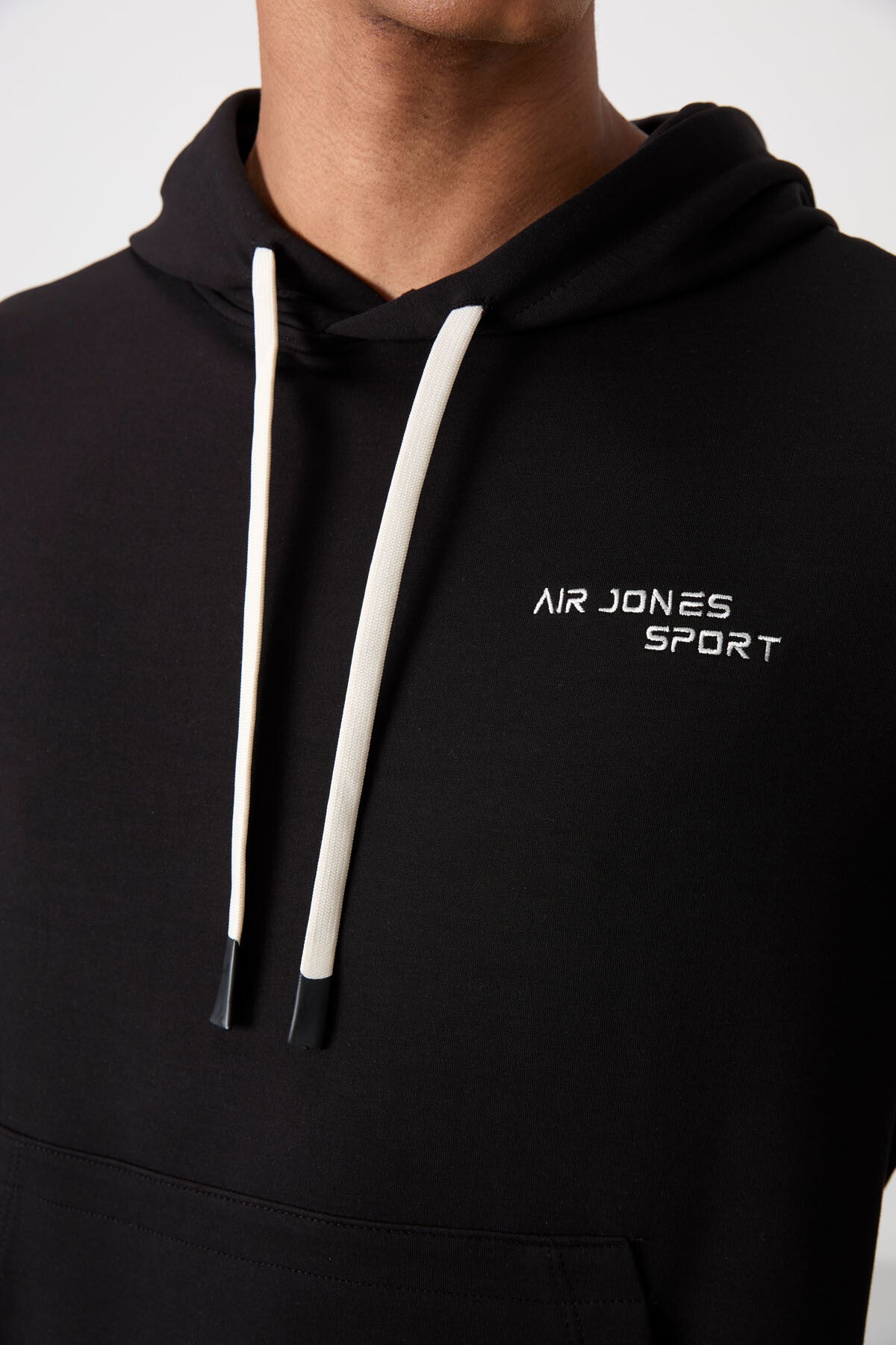 Ecru - Black Cotton Thick Soft Textured Comfort Fit Embroidered Men's Tracksuit Set - 85255