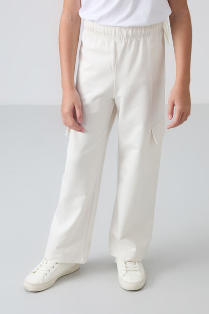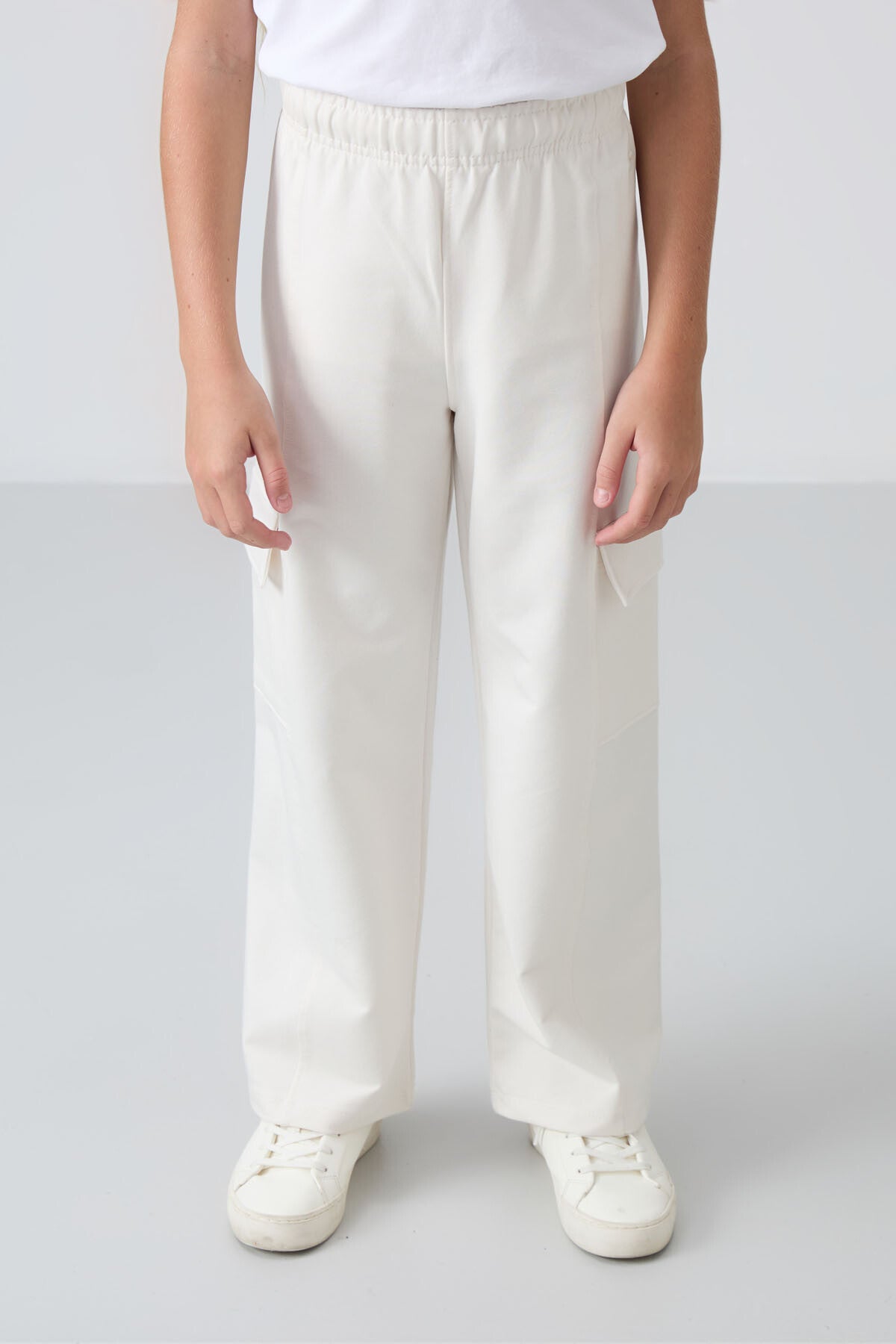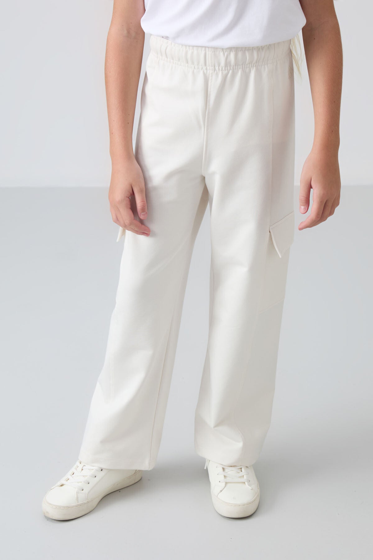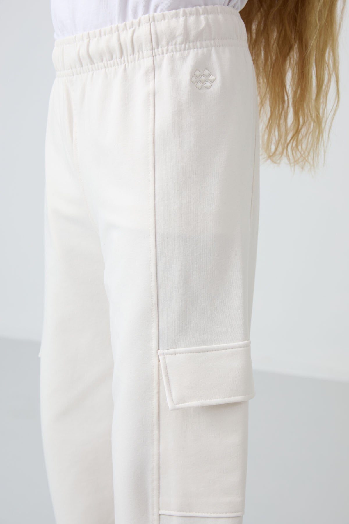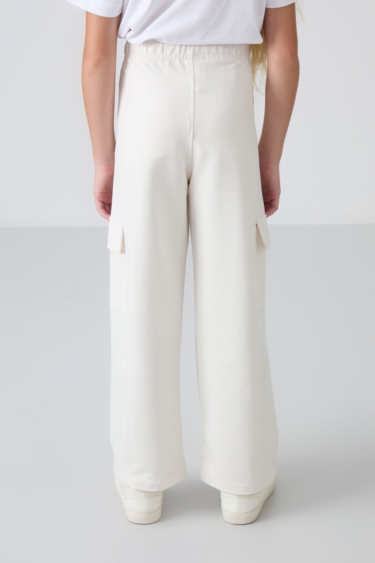 Ecru Cargo Pocket Detailed Wide Leg Girls' Tracksuit Bottom - 75143