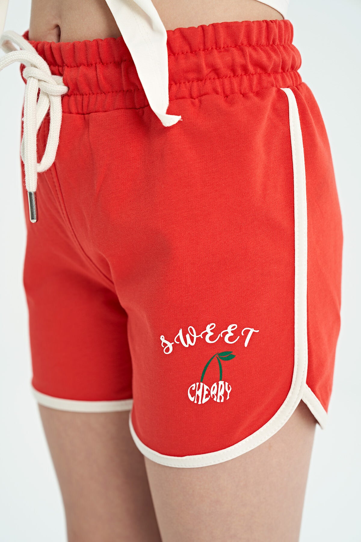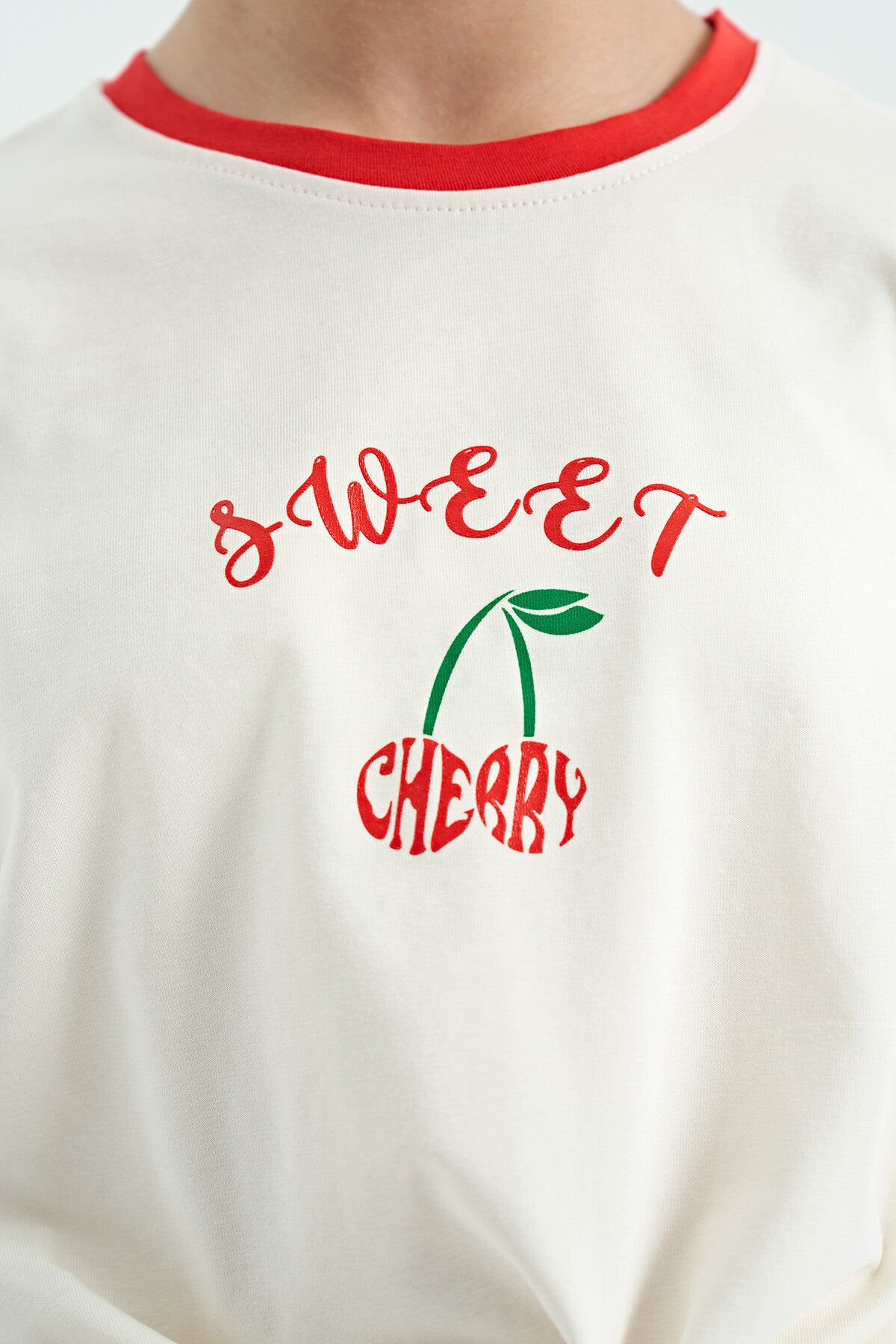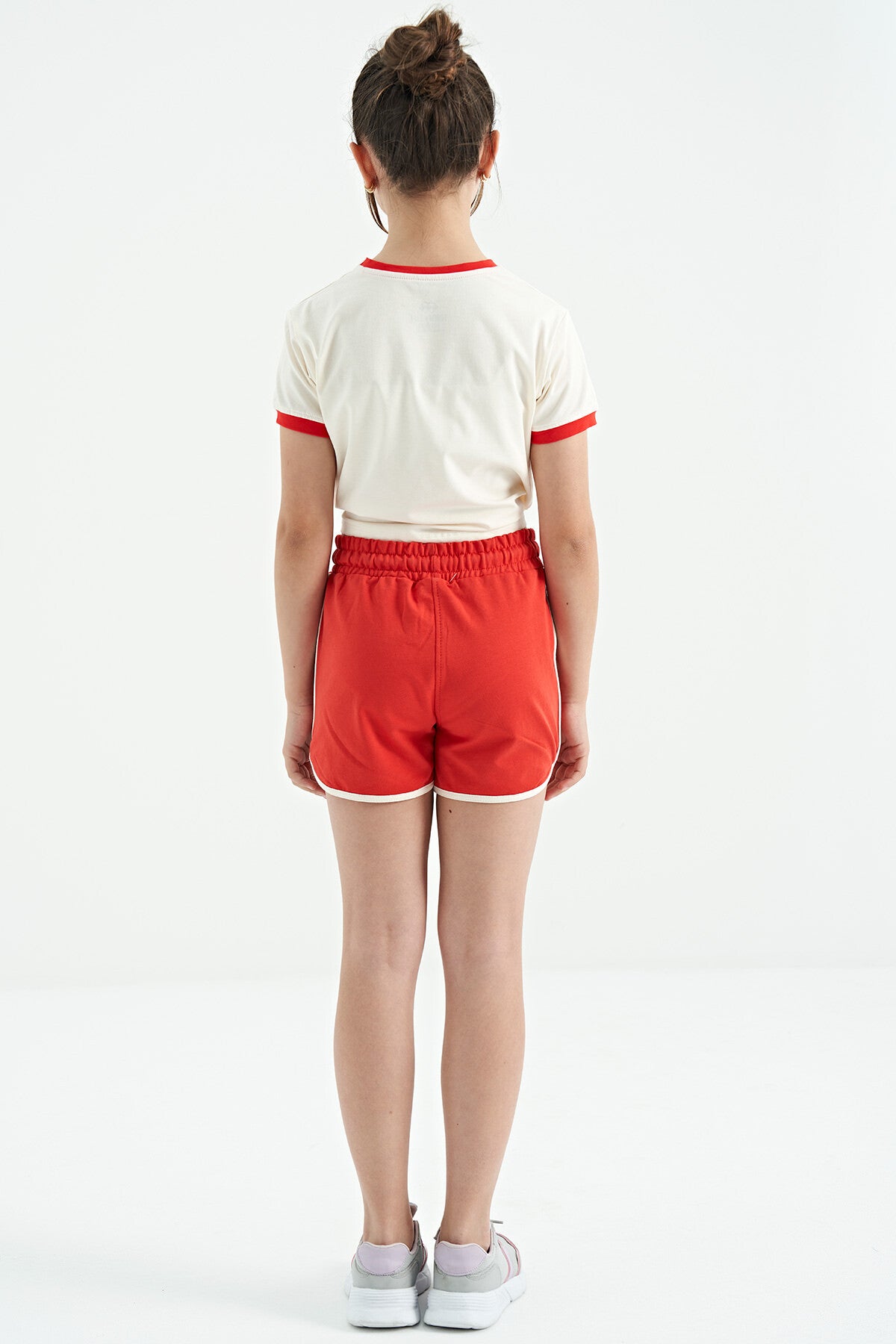Ecru - Fiesta O Collar Printed Knot Detailed Relax Fit Girls' Shorts Set - 75132