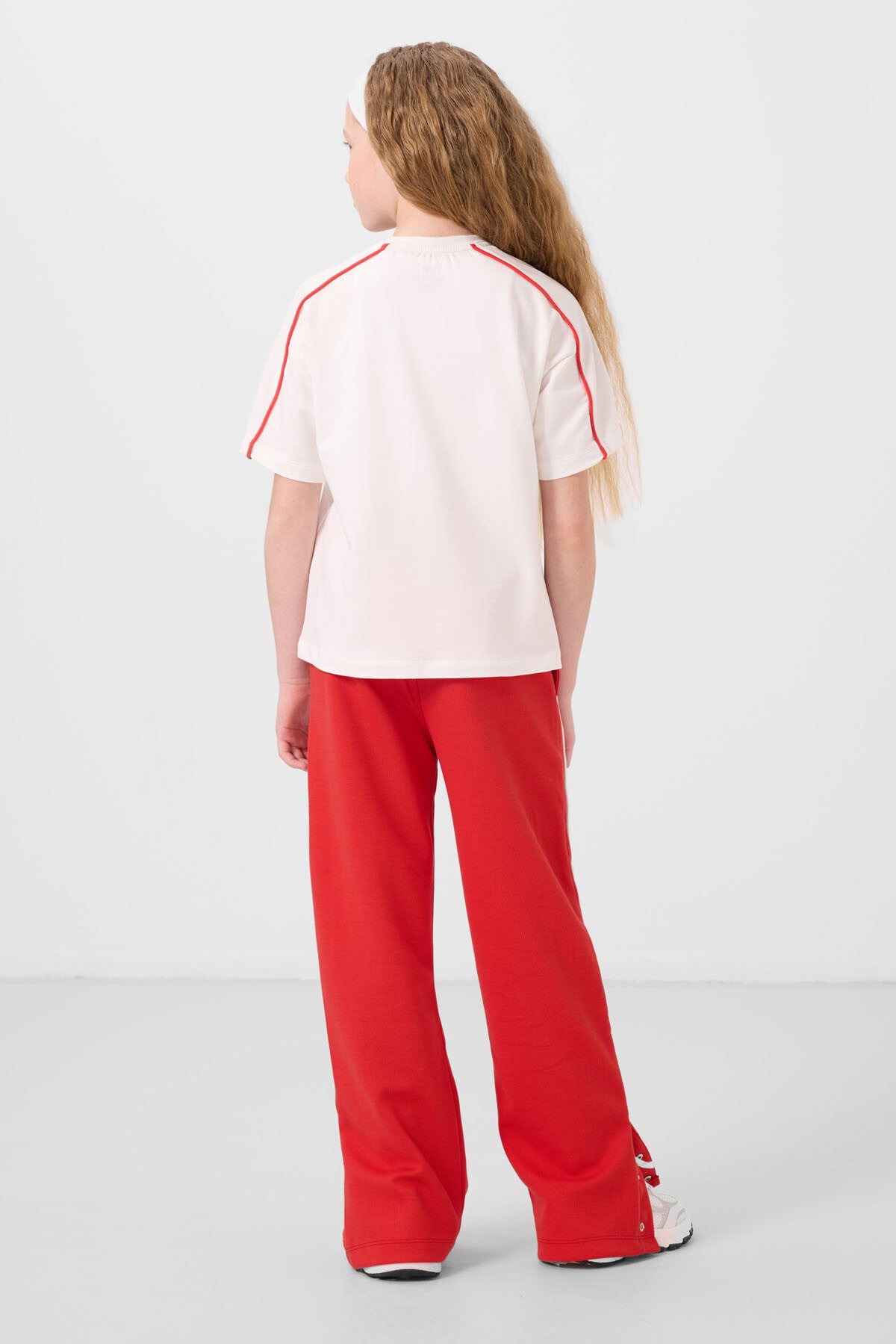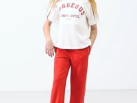 Ekru-Fiesta O Collar Printed Wide Skirts Detailed Detailed Girl Child Palazzo Tracksuit Set - 75172