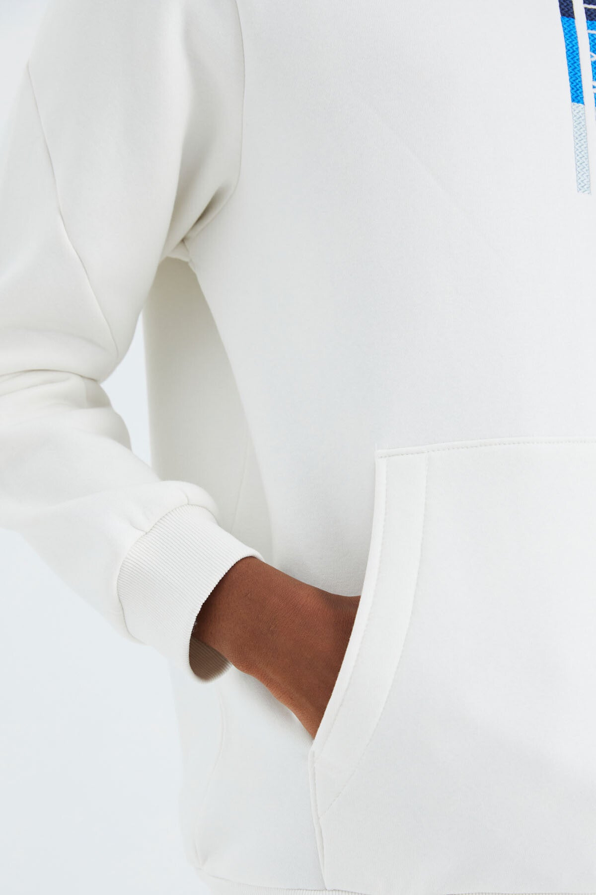 Ecru Hooded Embroidered Relaxed Fit Men's Sweatshirt - 88291