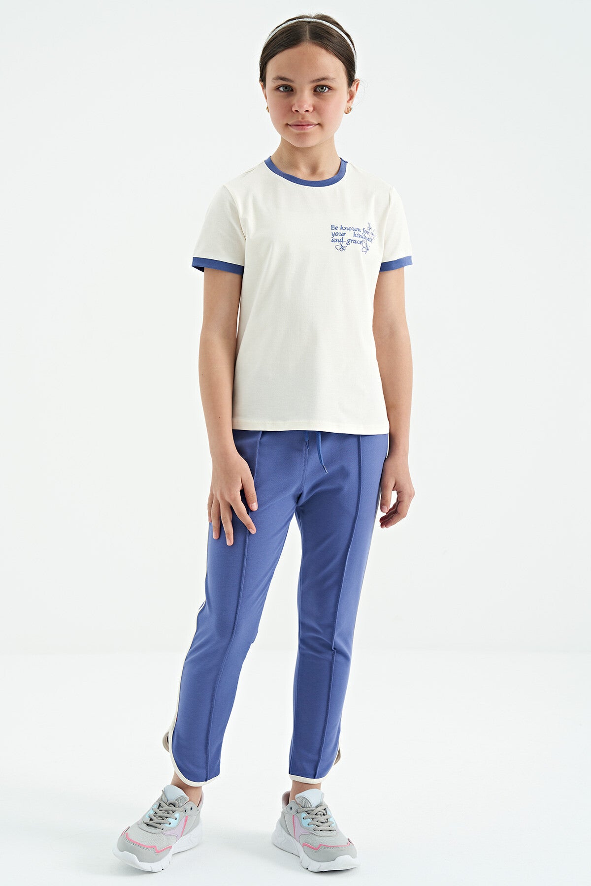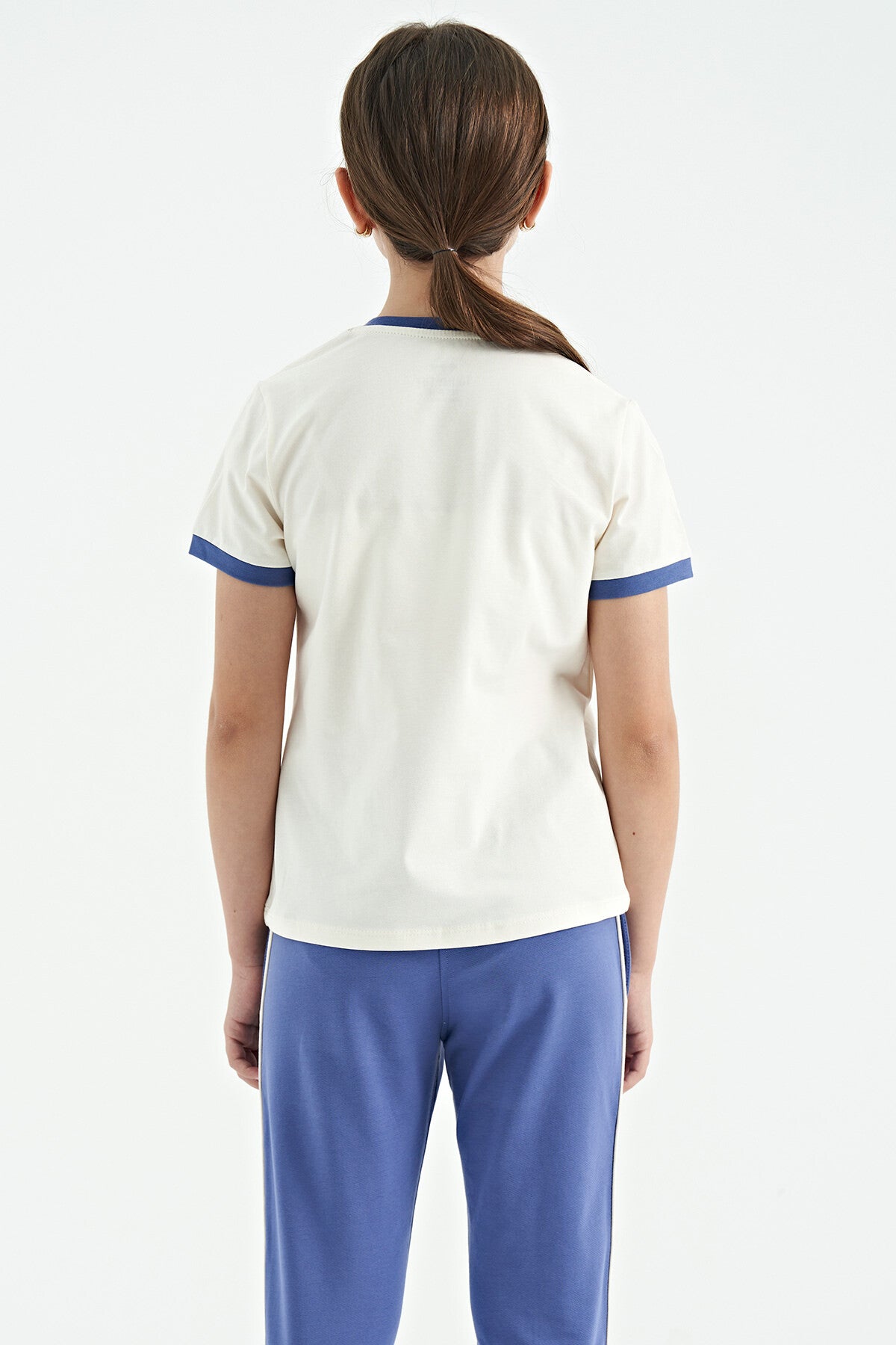 Ecru Minimal Print O Neck Comfort Fit Short Sleeve Girls' T-Shirt - 75110