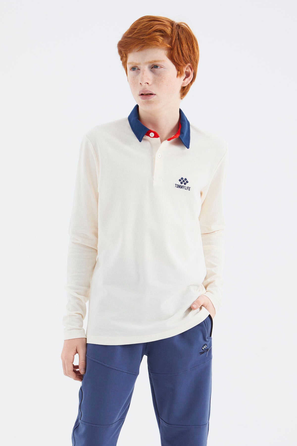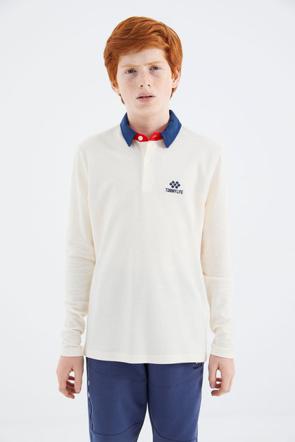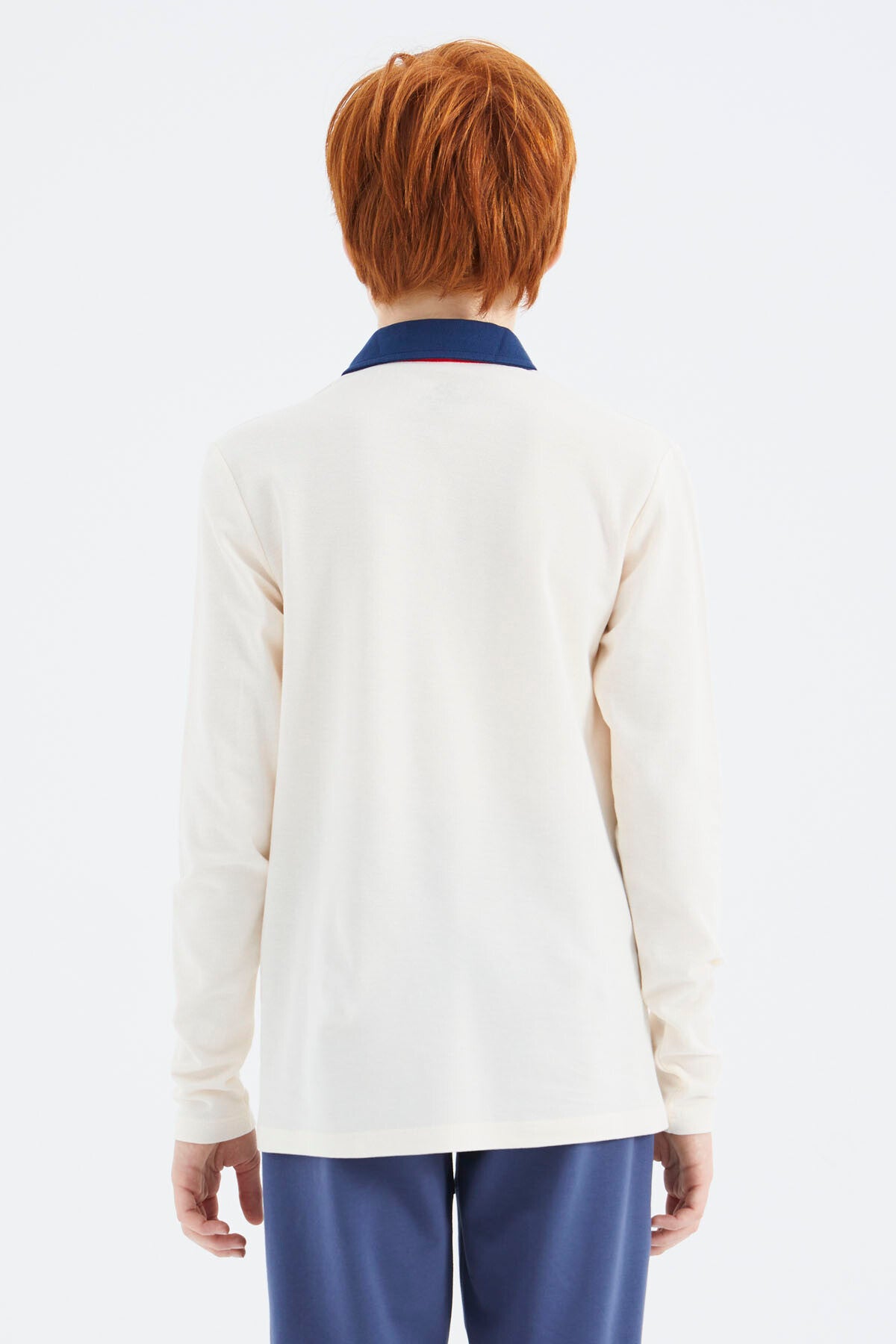 Ecru Polo Collar Basic Boys' T-Shirt - 11171