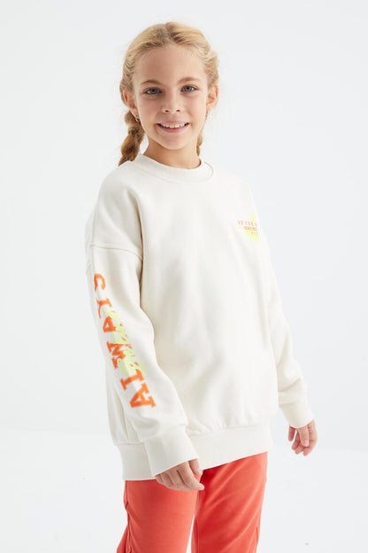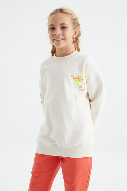 Print Detailed O Collar Girls' Sweatshirt - 75095