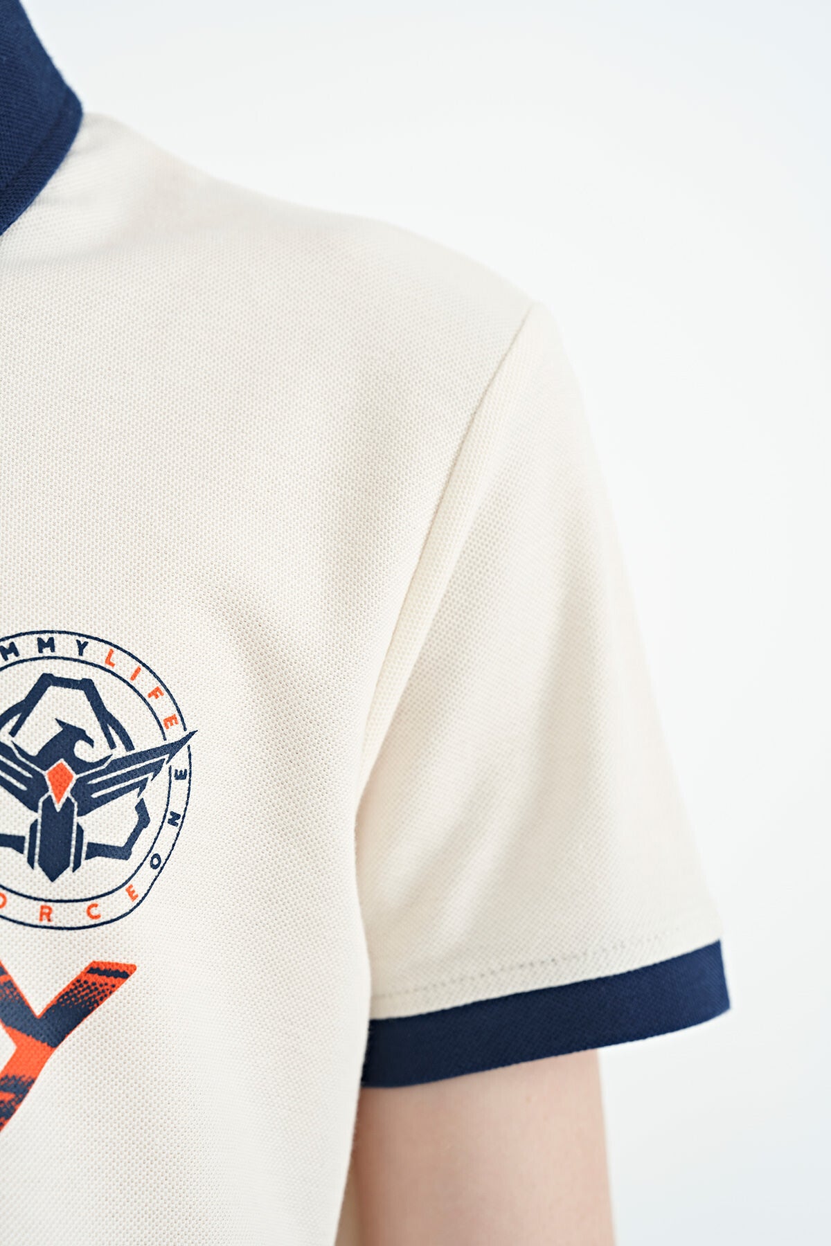 Ecru Print Pattern Standard Fit Polo Collar Boys T-Shirt - 11143