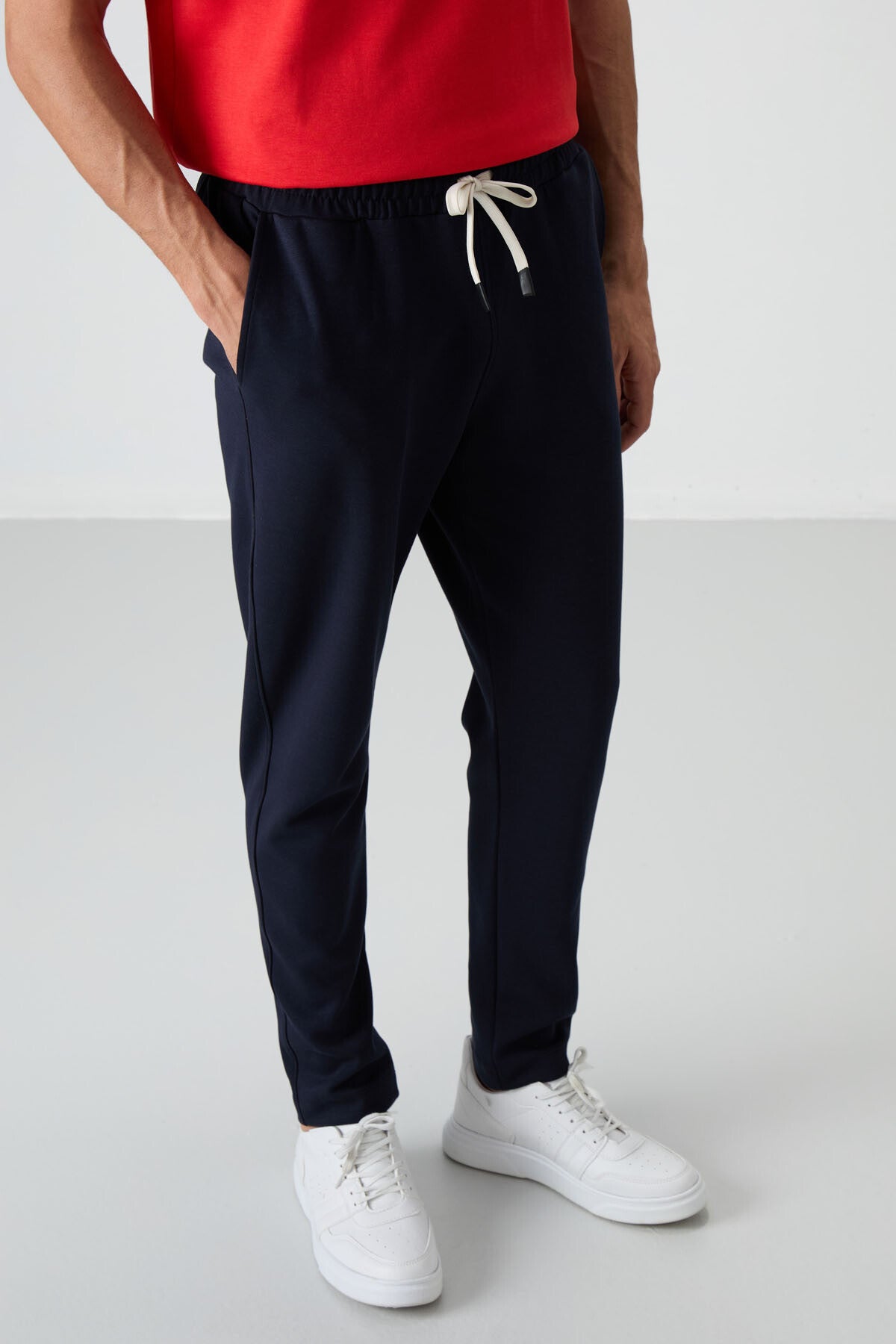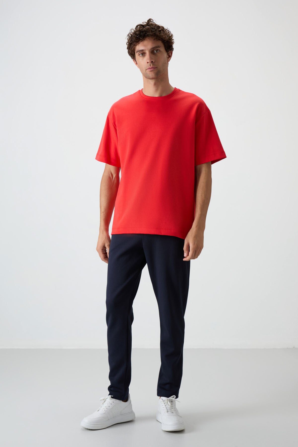 Fiesta - Navy Blue Cotton Thick Soft Textured Oversize Fit Basic Men's Tracksuit Set - 85251
