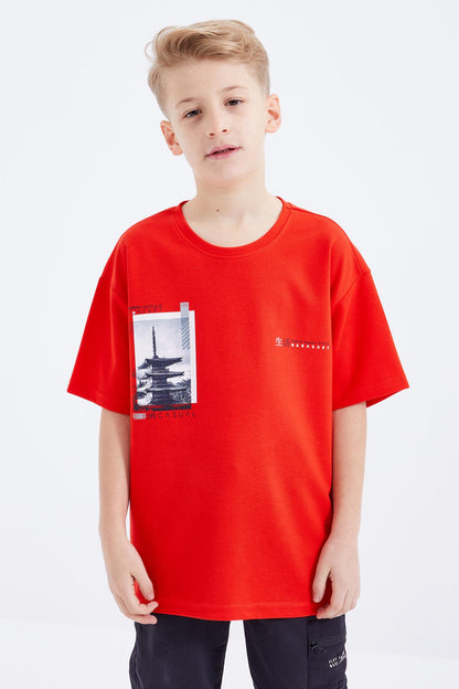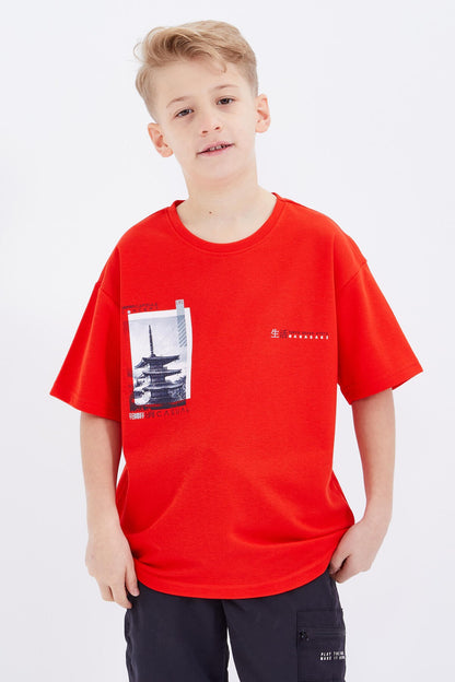 Fiesta Oversize Printed Short Sleeve O Collar Boys' T-Shirt - 10925
