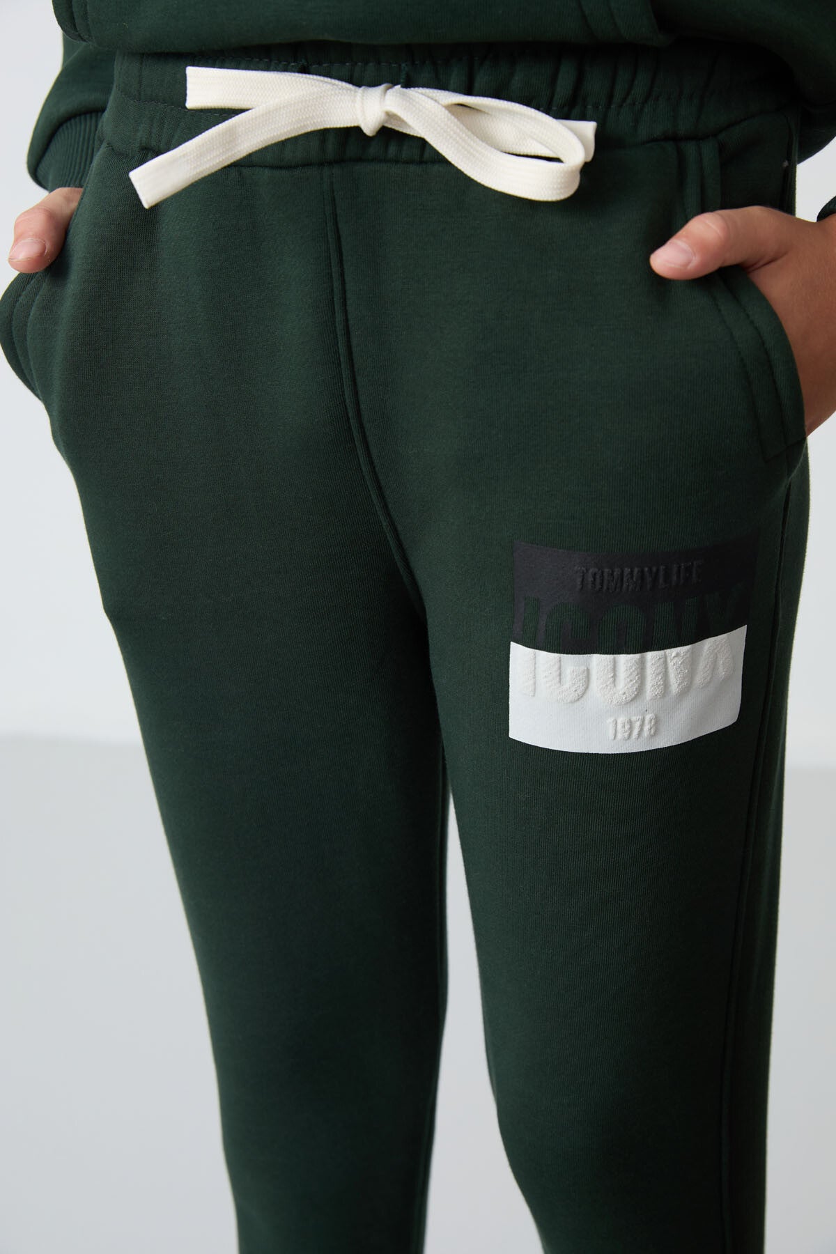 Forest Green Cotton Thick Fleece-Lined Soft Textured Standard Fit Printed Boys' Tracksuit Set - 11246