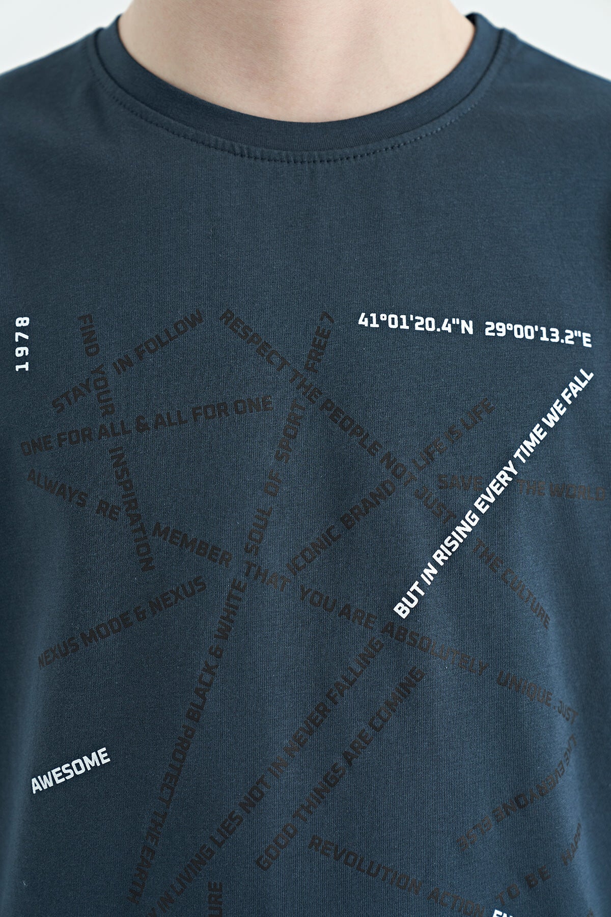 Forest Green Minimal Print Standard Fit O Collar Boys T-Shirt - 11132