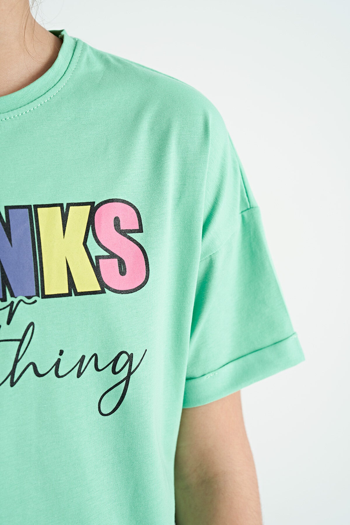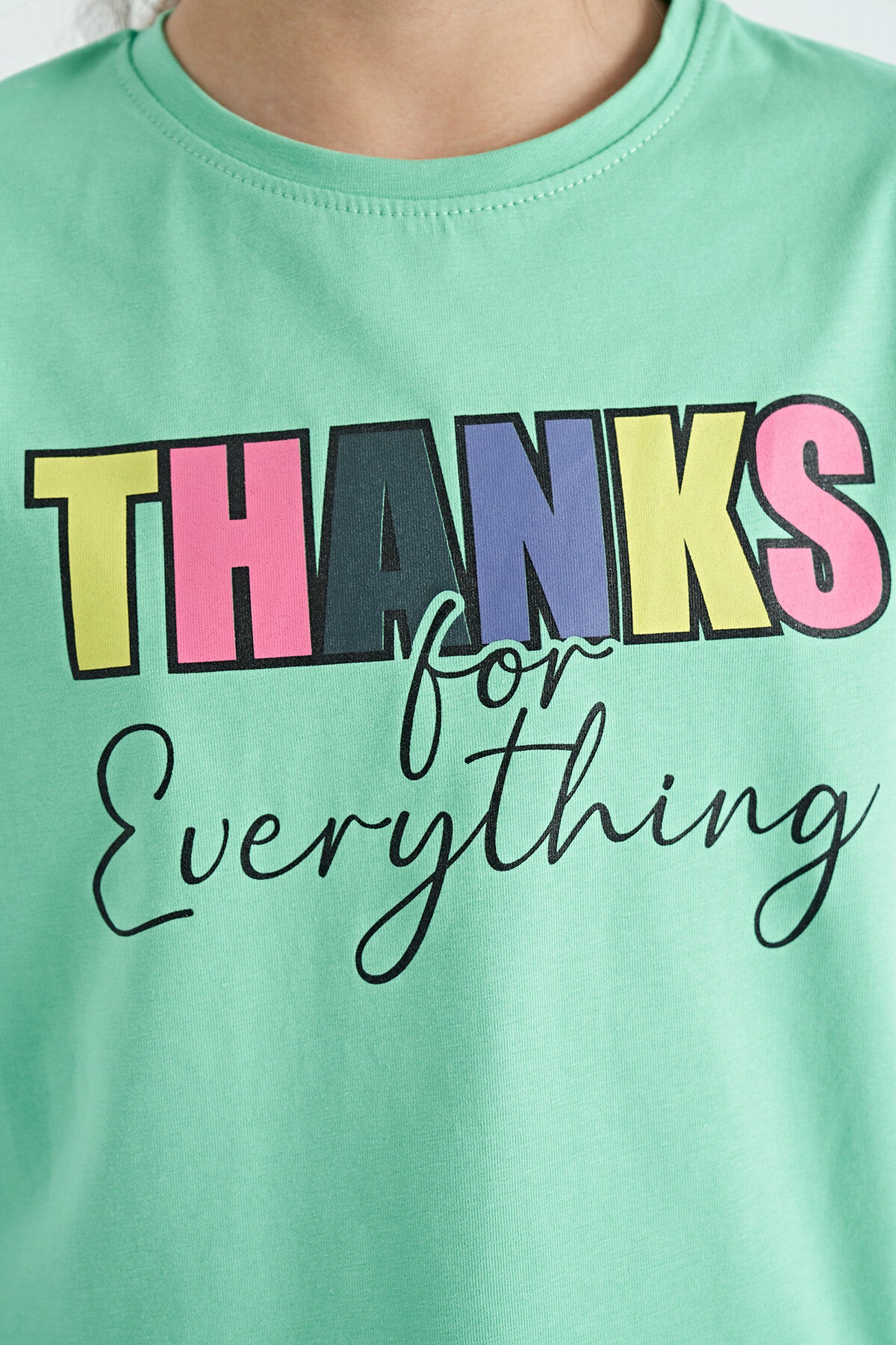 Forest Green - Oversize Printed Girl's Crop Tights Set with Forest Green Writing - 75133
