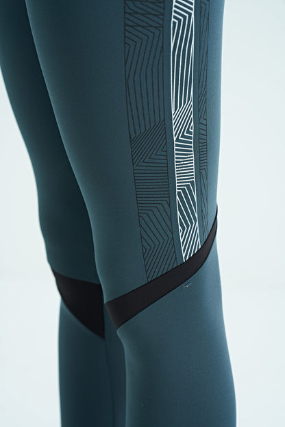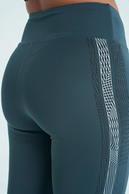 Forest Green Print Detailed High Waist Slim Fit Women's Tights - 94640