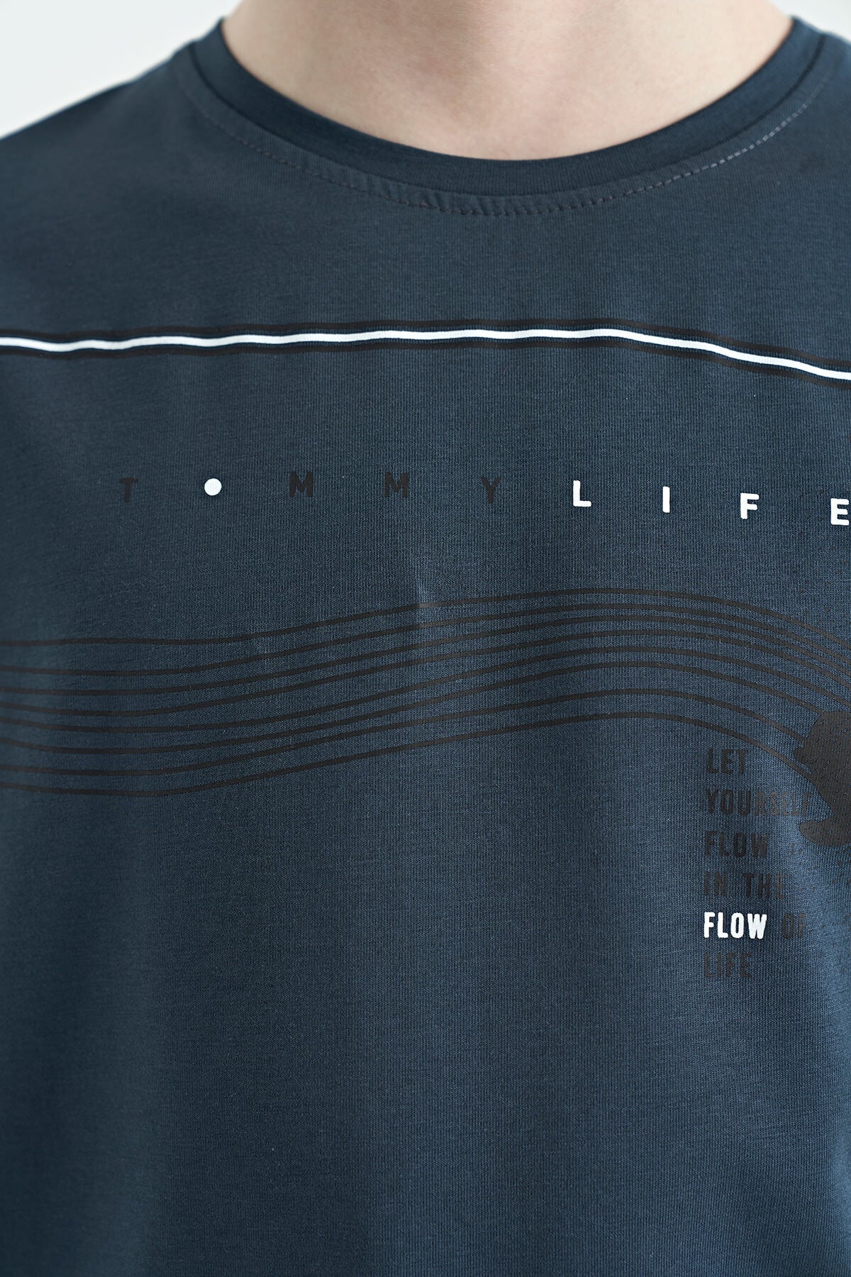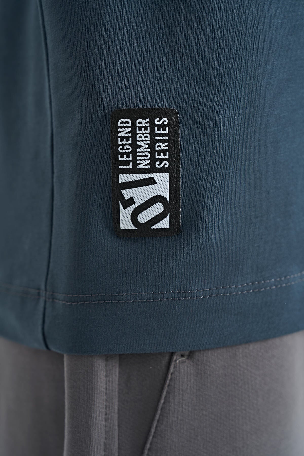 Forest Green Print Detailed Standard Fit O Collar Boys T-Shirt - 11133
