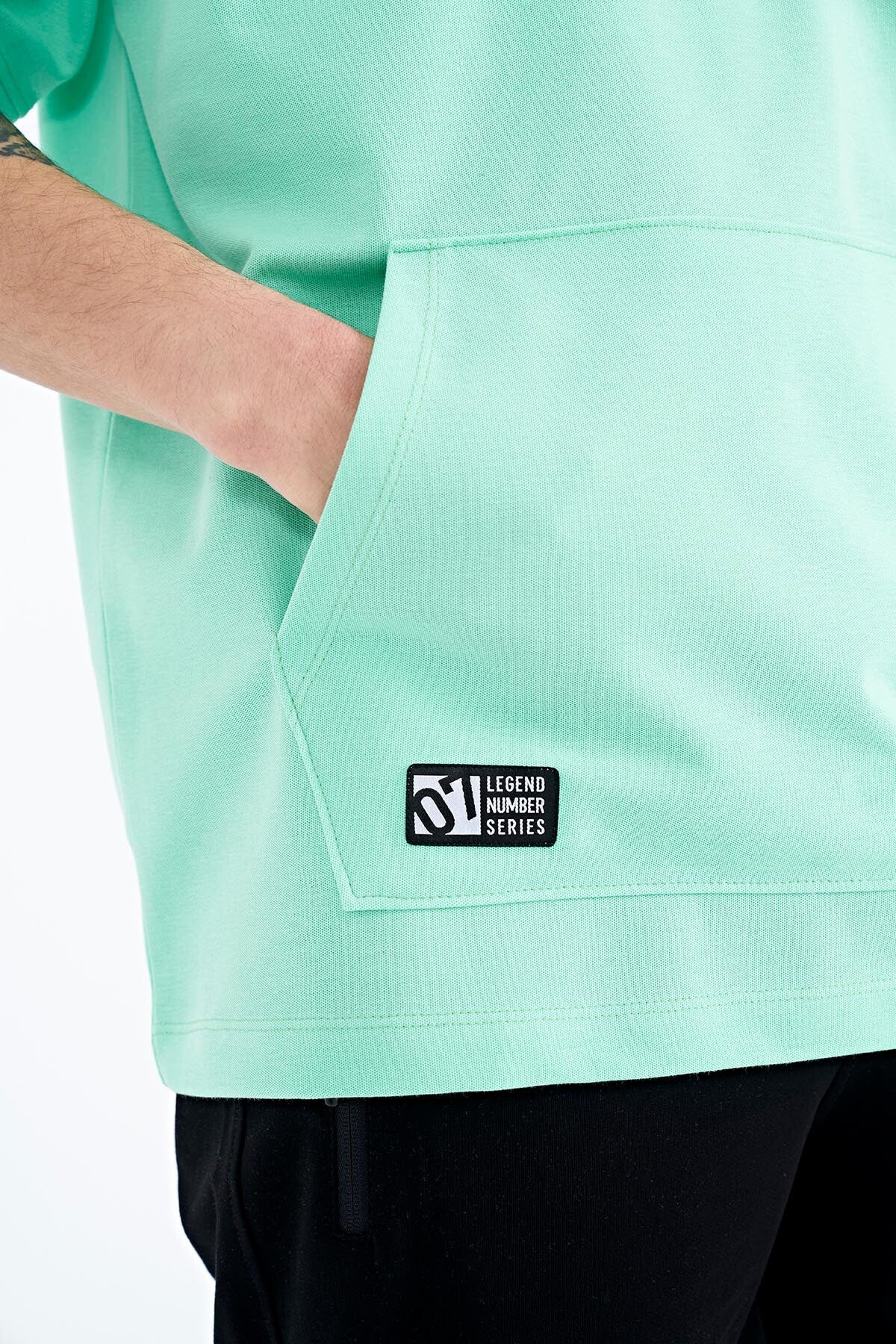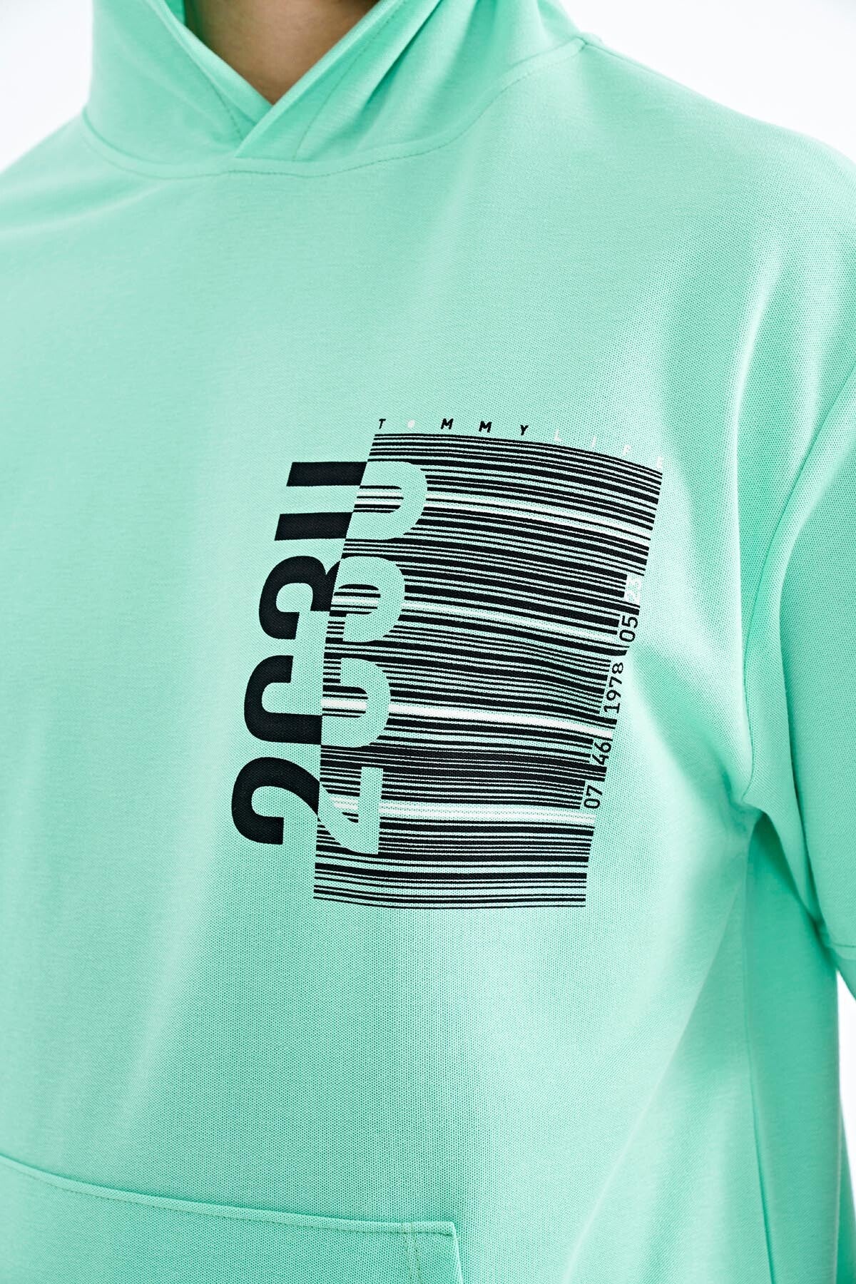 Forest Green Printed Hooded Kangaroo Pocket Oversize Men's T-shirt - 88196