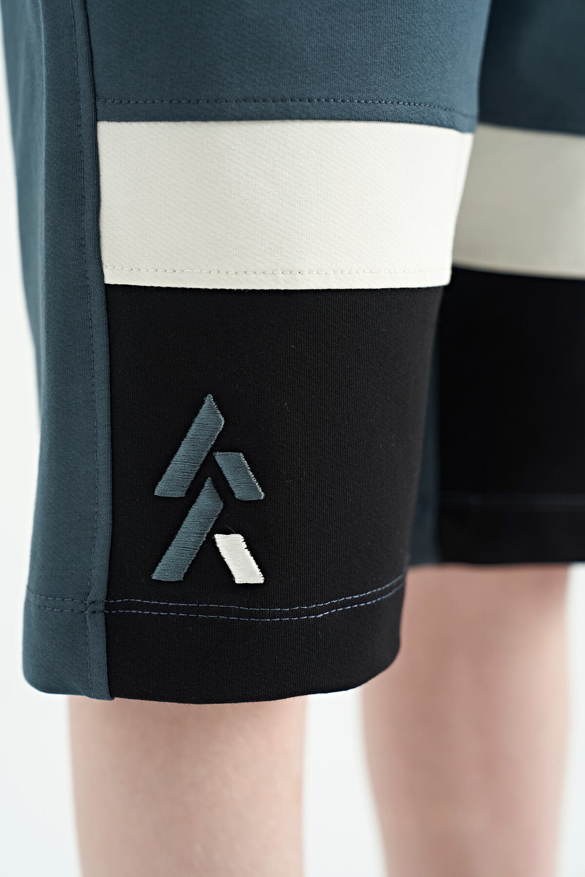 Forest Green Printed Laced Embroidery Detailed Standard Pattern Boys Shorts - 11129
