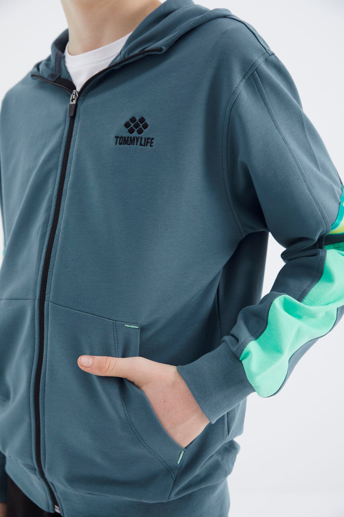 Forest Green Zippered Boys' Sweatshirt - 11180