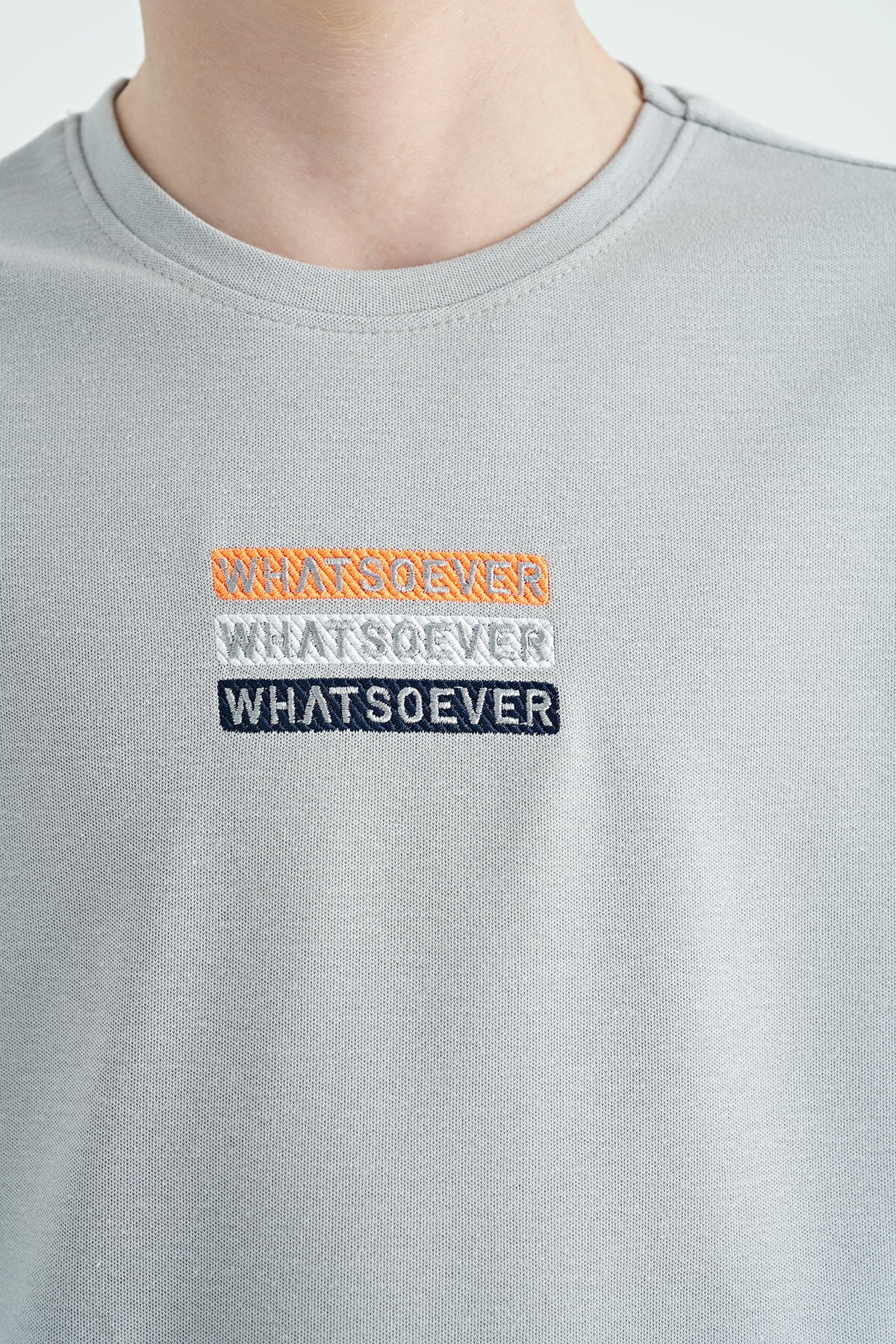 Gray Embroidered O Collar Oversize Boys T-Shirt - 11146
