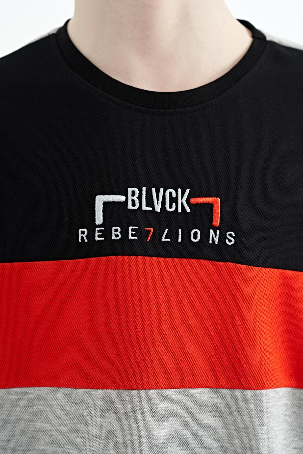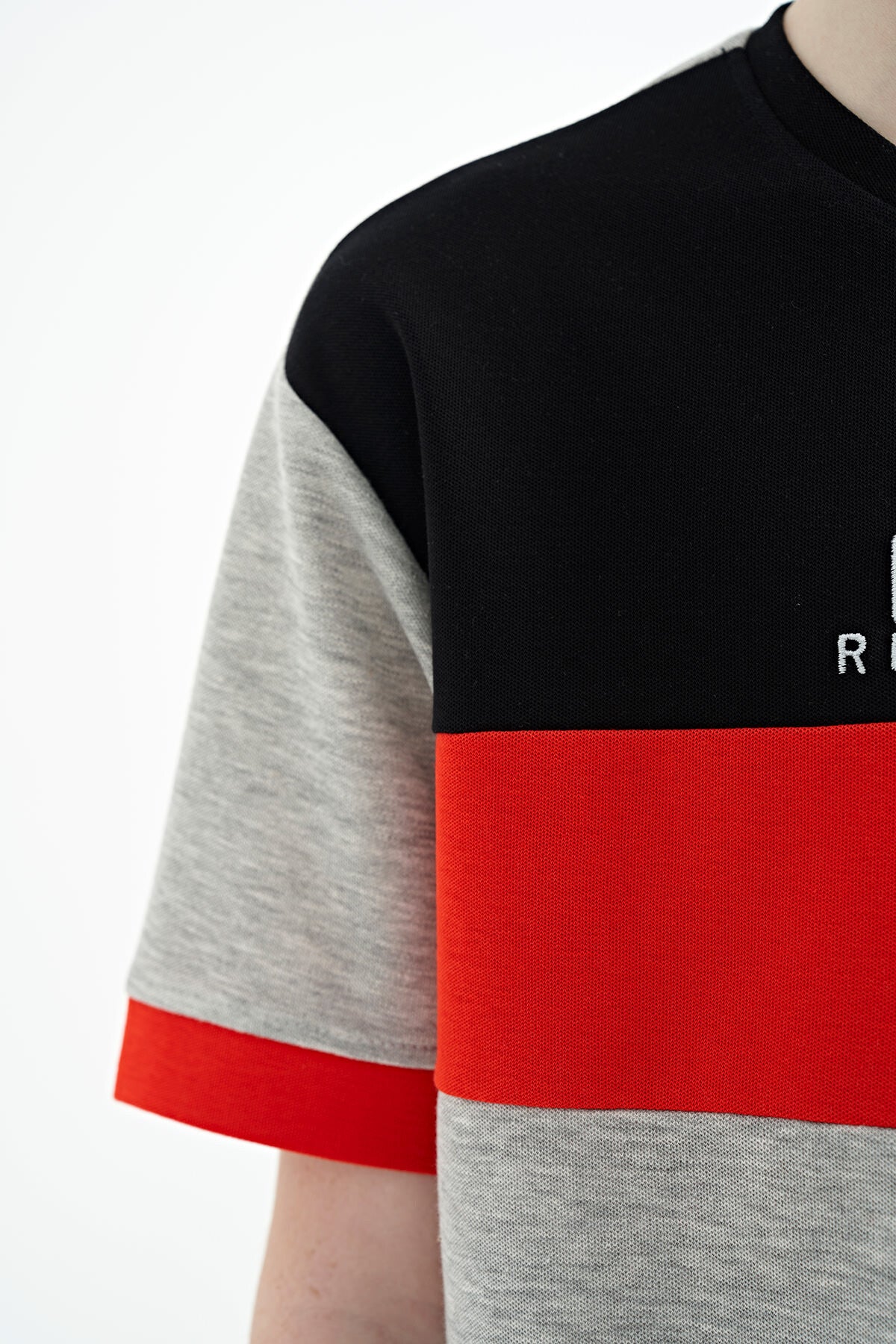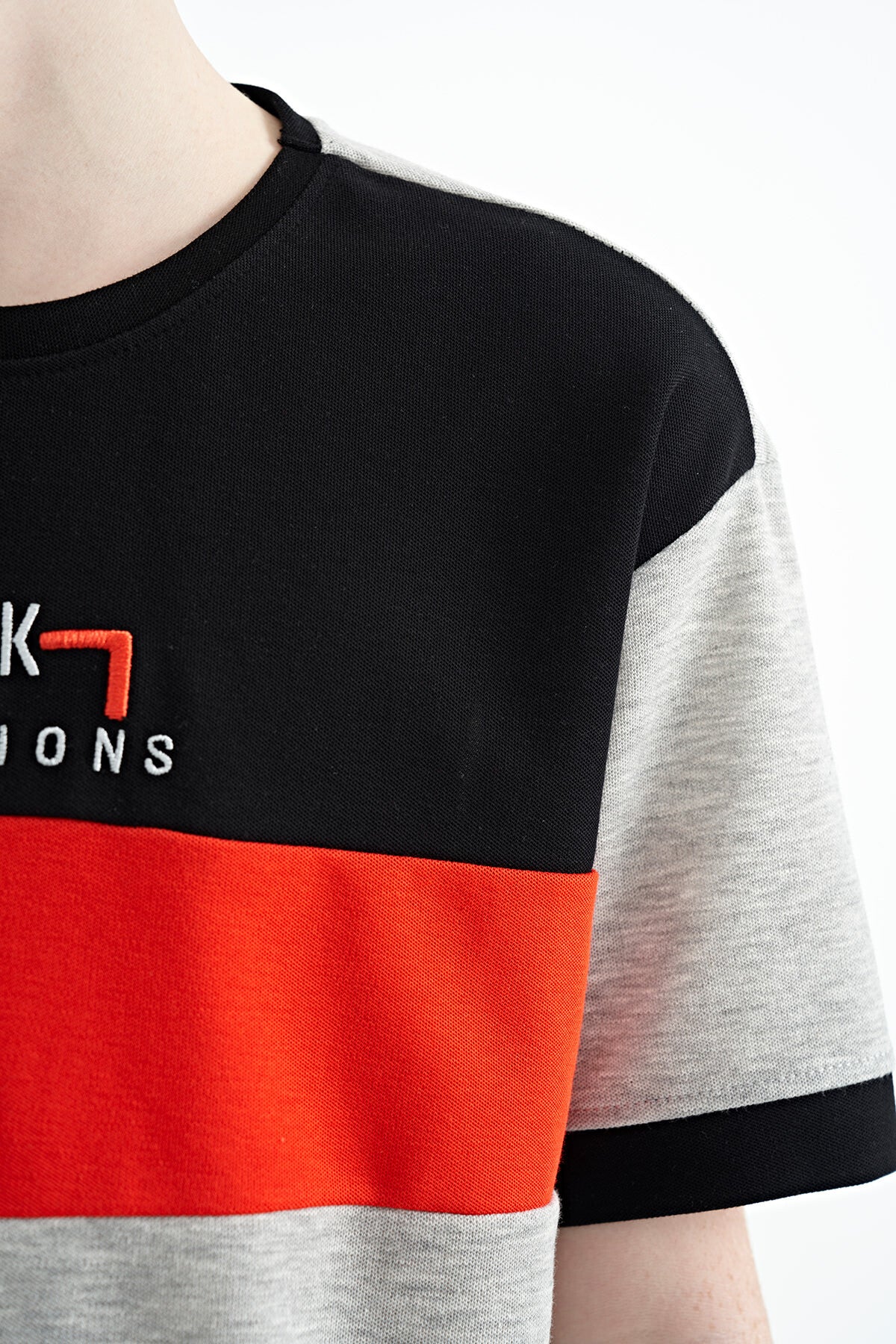 Grey Melange Color Transition Embroidered Oversize Boys T-Shirt - 11159