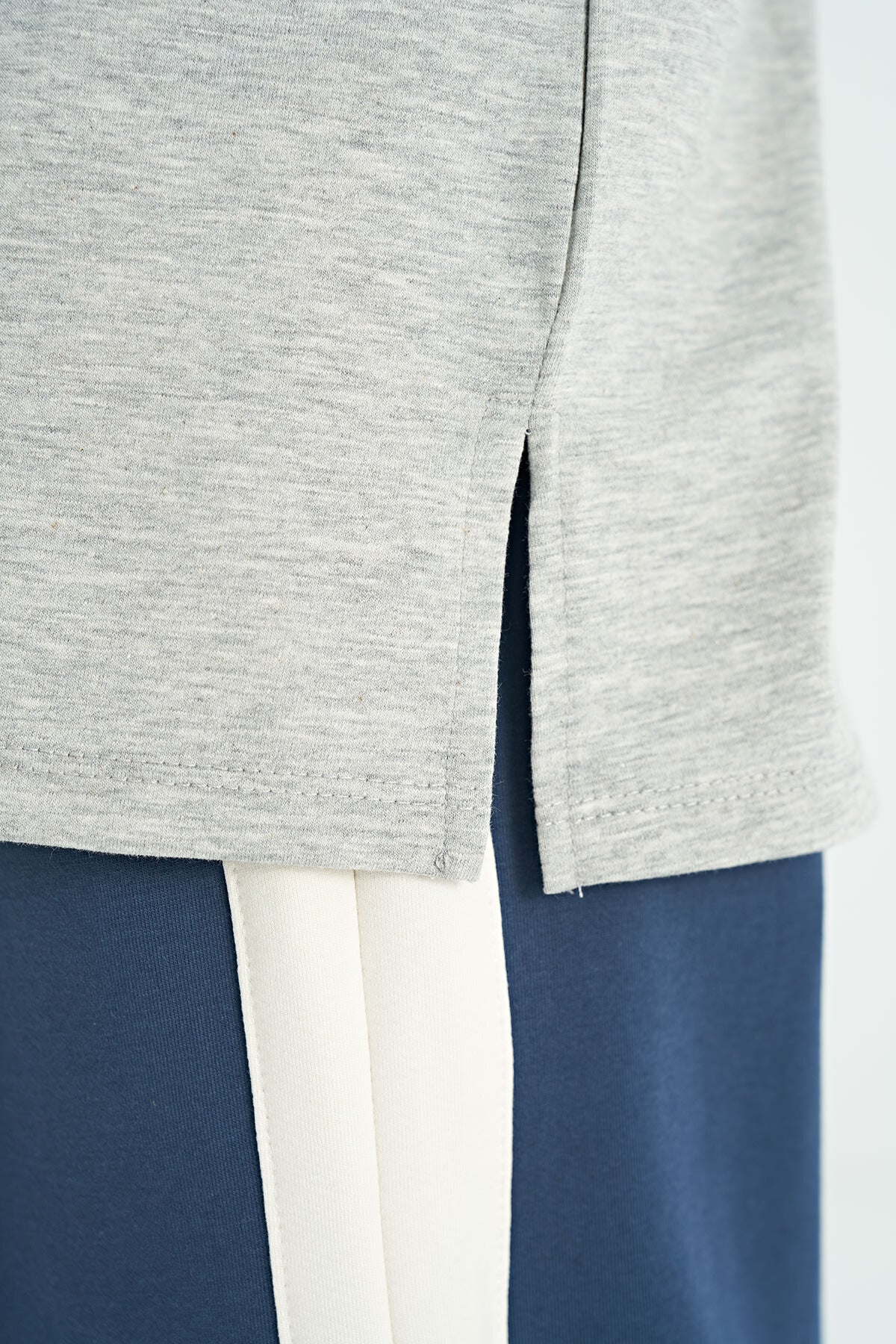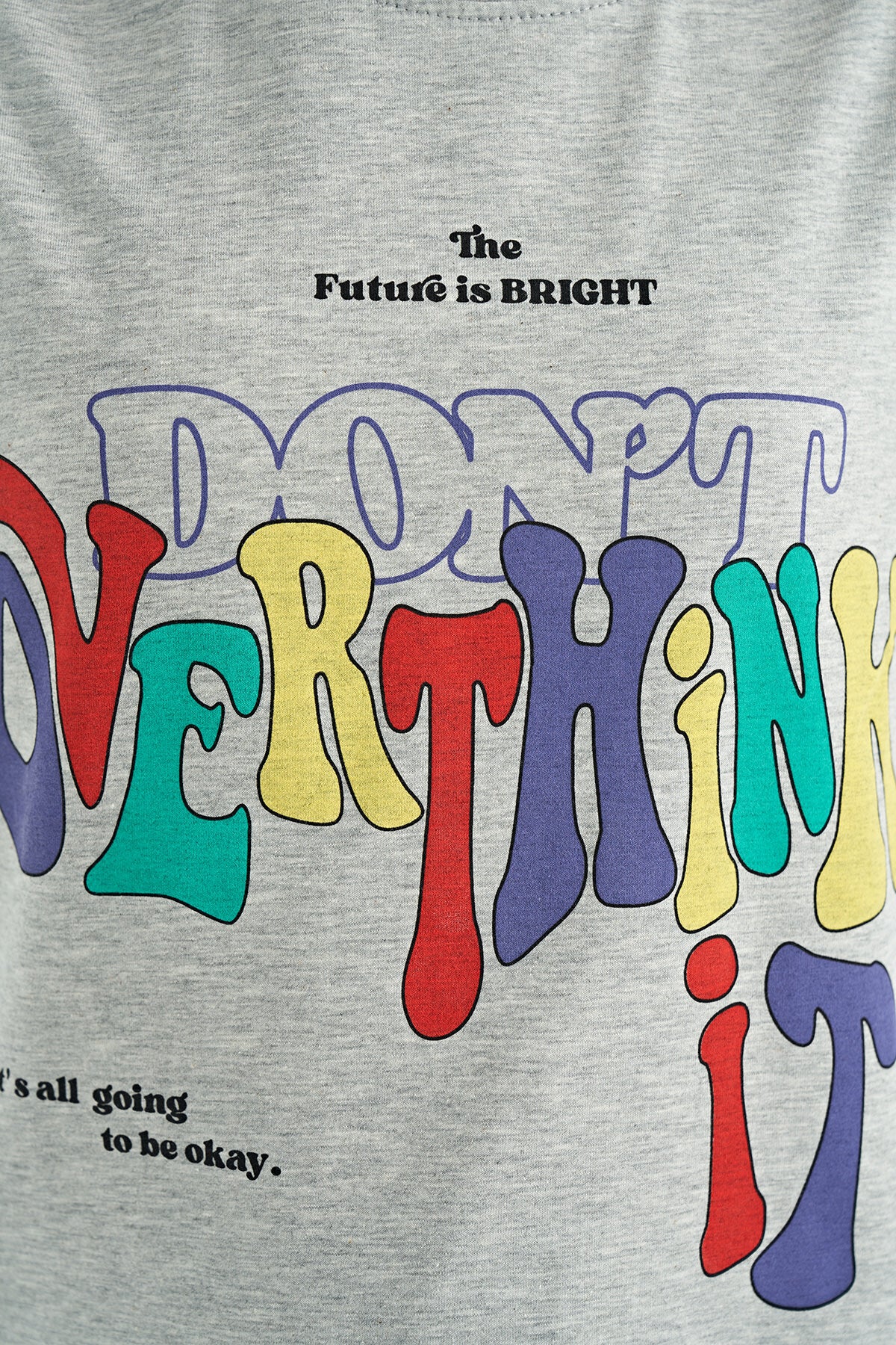 Gray Melange Print Letter O Collar Oversize Short Sleeve Girls T-Shirt - 75112