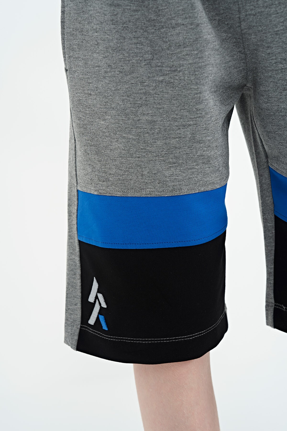 Gray Melange Printed Lace Embroidered Detailed Standard Pattern Boys Shorts - 11129