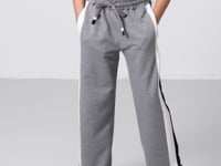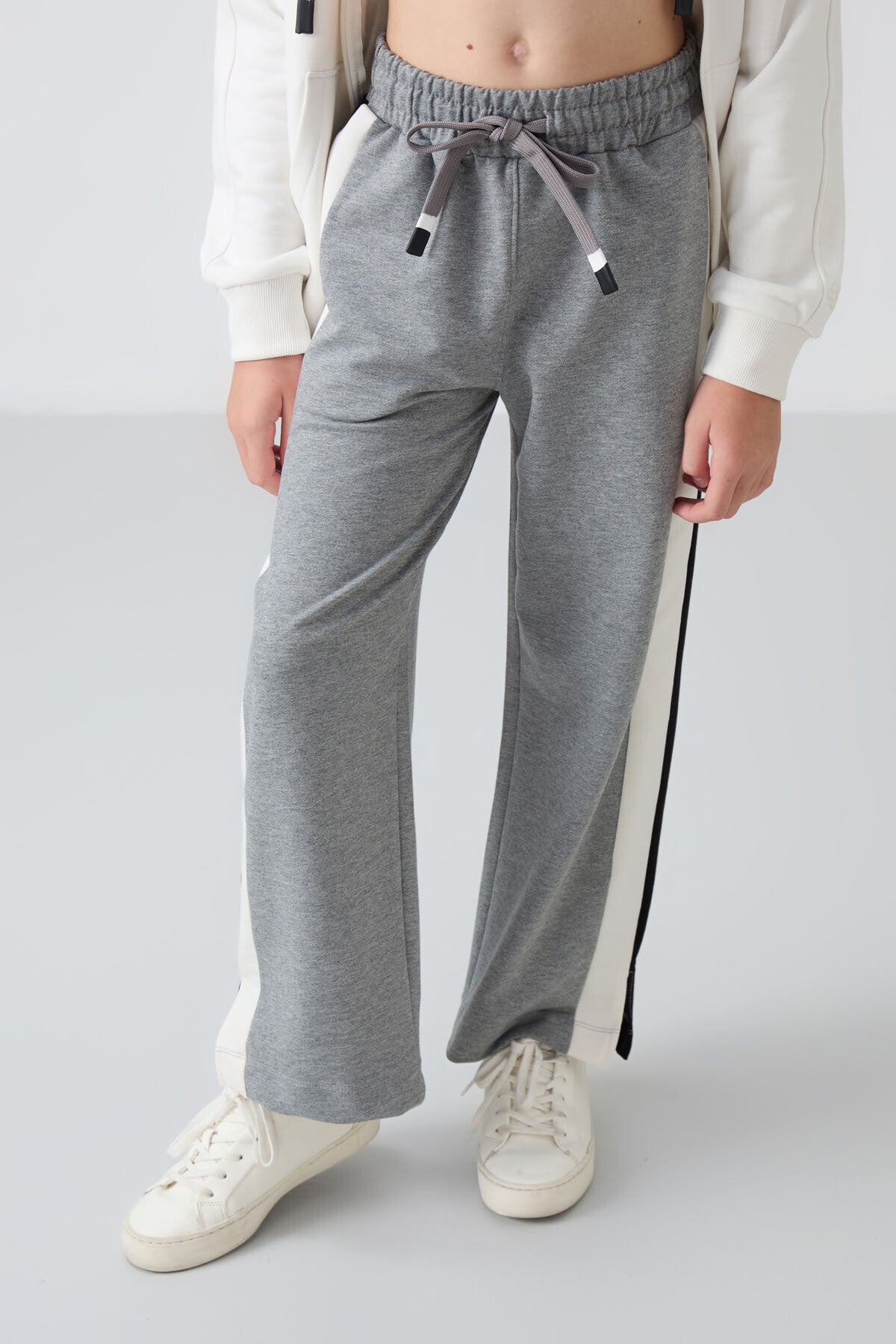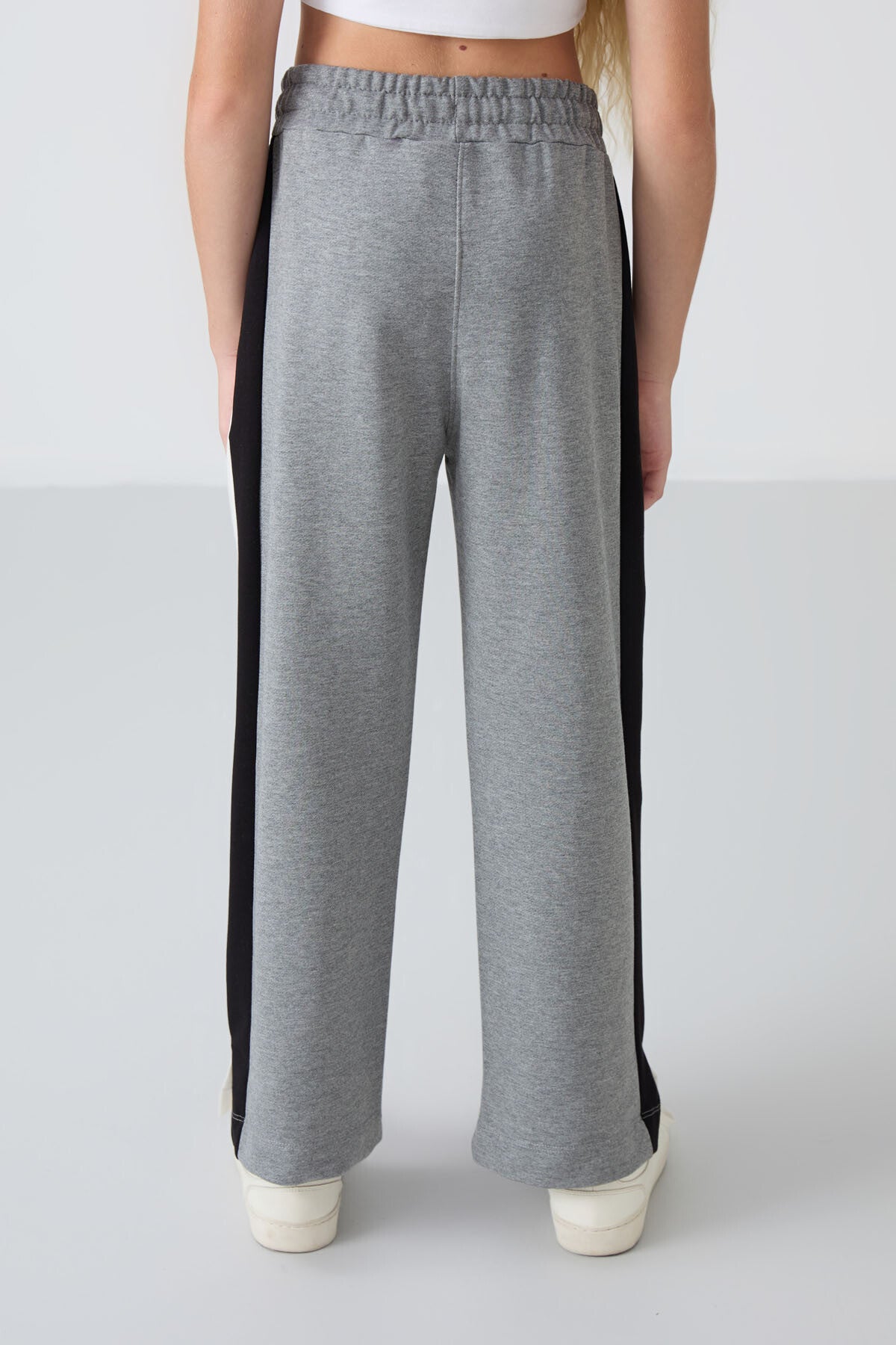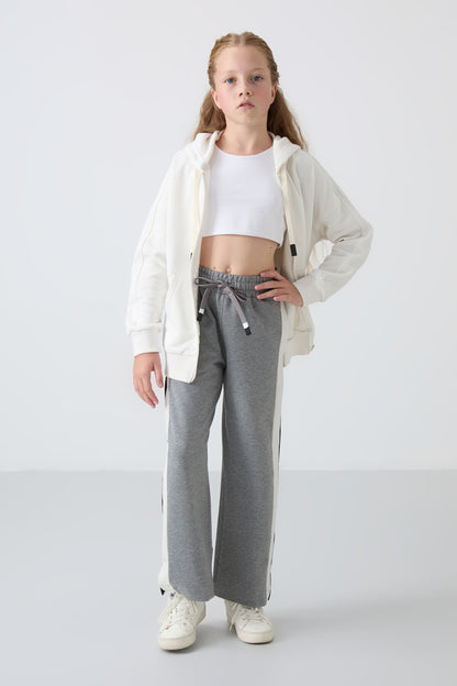 Grey Melange Slit Detailed Pocket Wide Leg Girls' Tracksuit Bottom - 75141