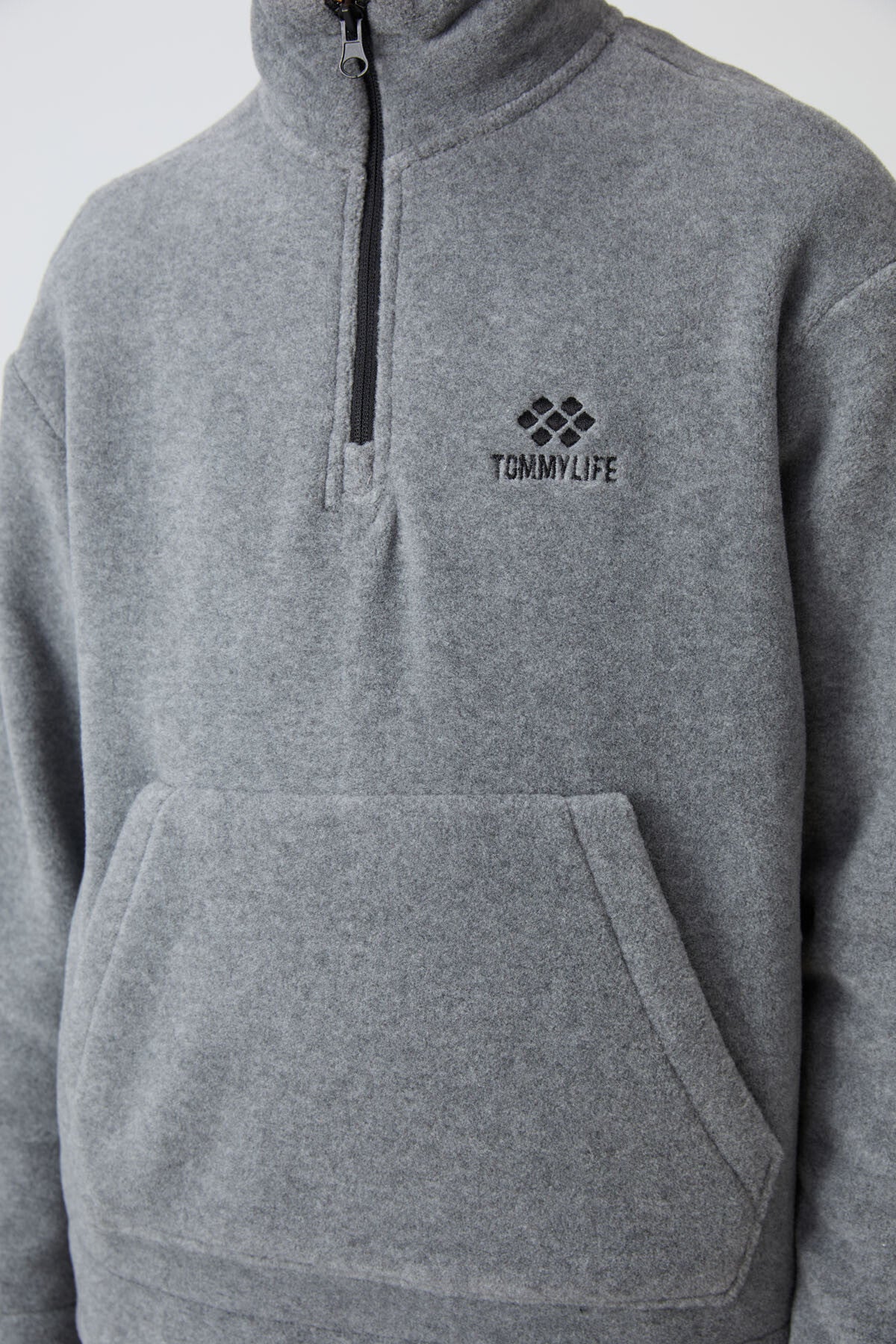 Grey Melange Thick Soft Textured Standard Fit Embroidered Fleece Boys' Tracksuit Set - 11218