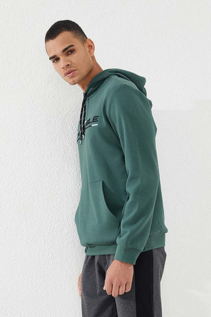 Green Kangaroo Pocket Standard Fit Hooded Men's Sweatshirt - 87883