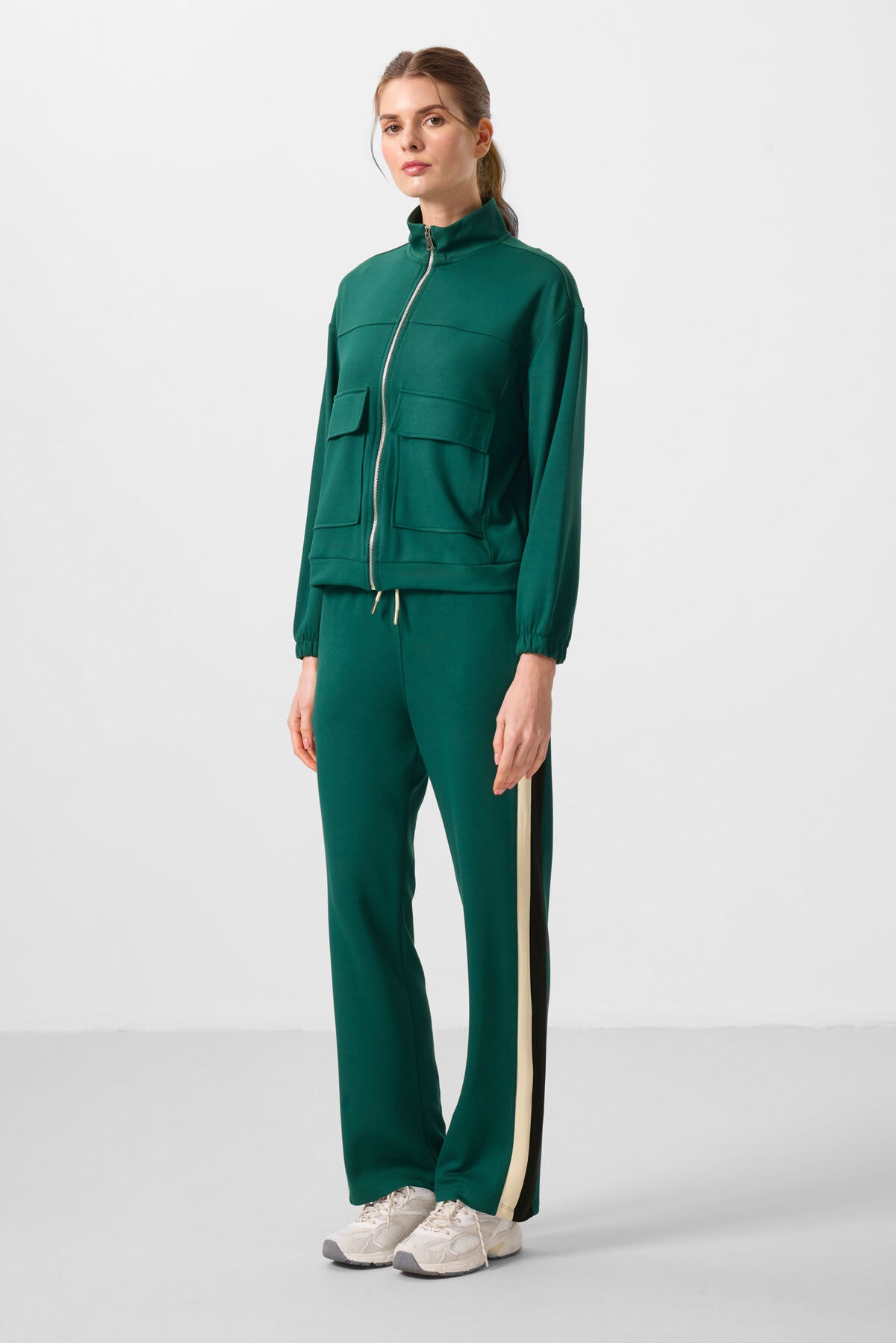 Green Soft Textured High Collar Oversize Cargo Pocket Women's Crop Top Sweatshirt - 97301