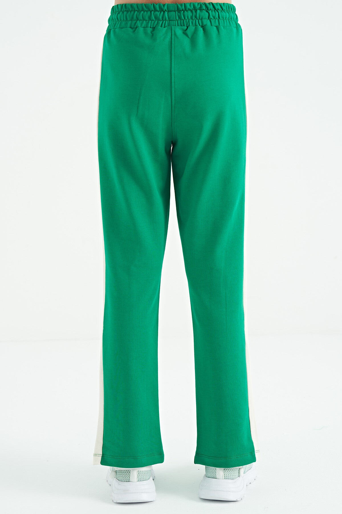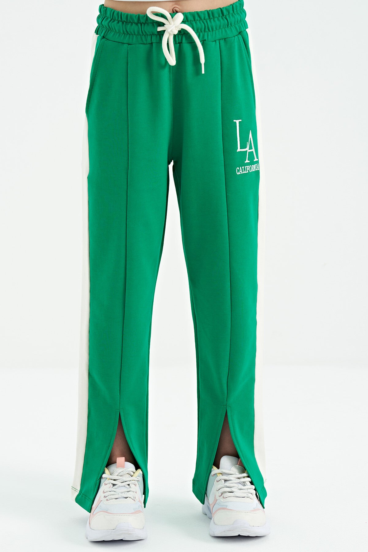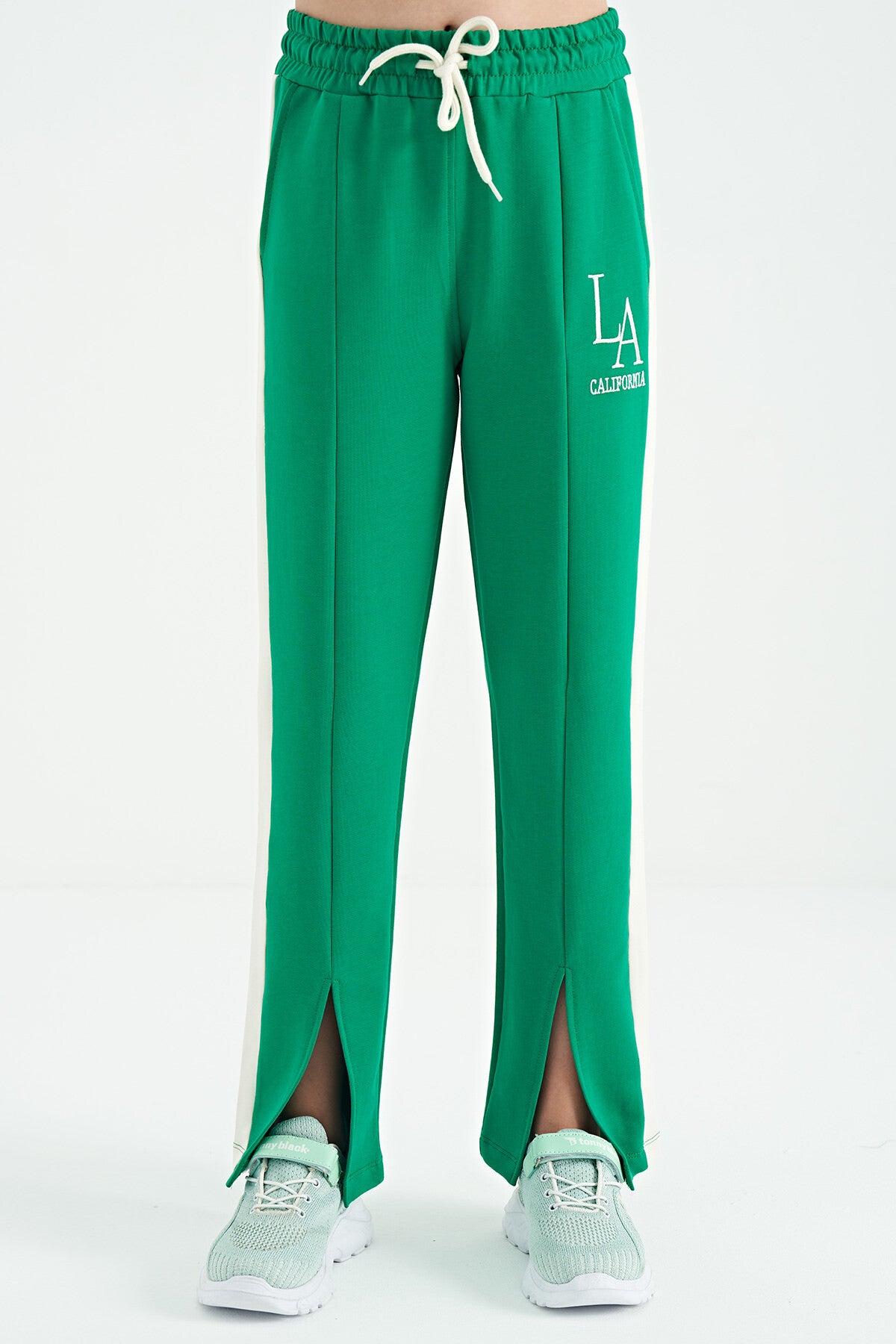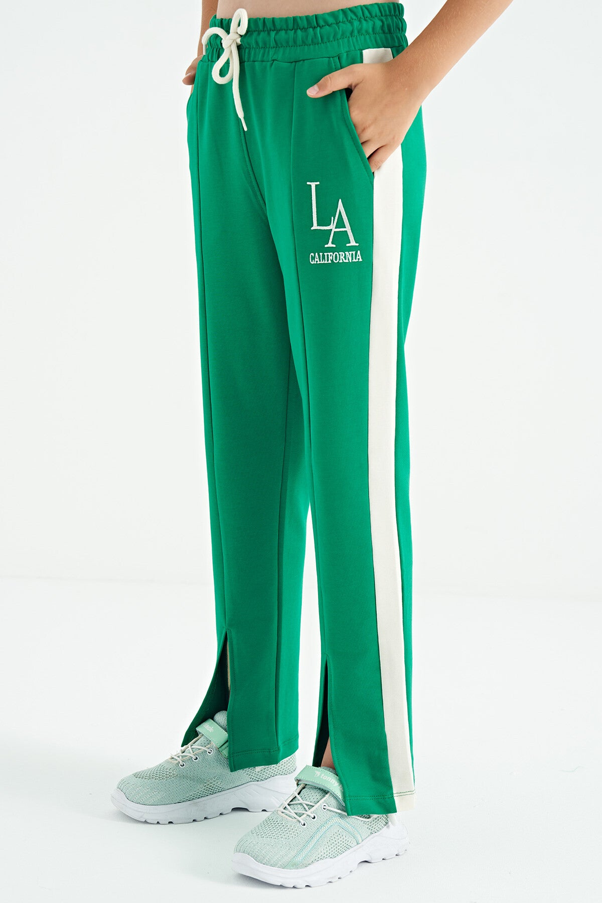 Green Writing Embroidered Detailed Laced Relax Fit Girls Tracksuit Bottom - 75121