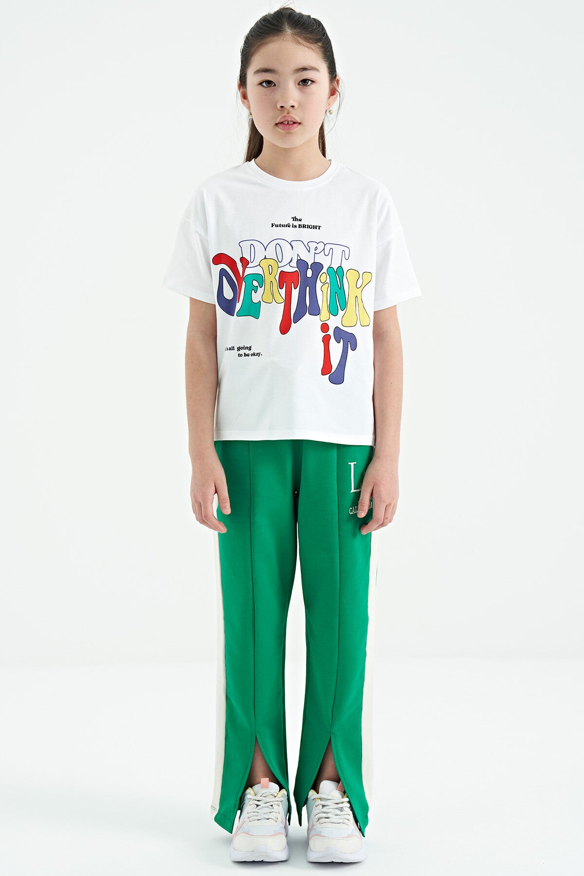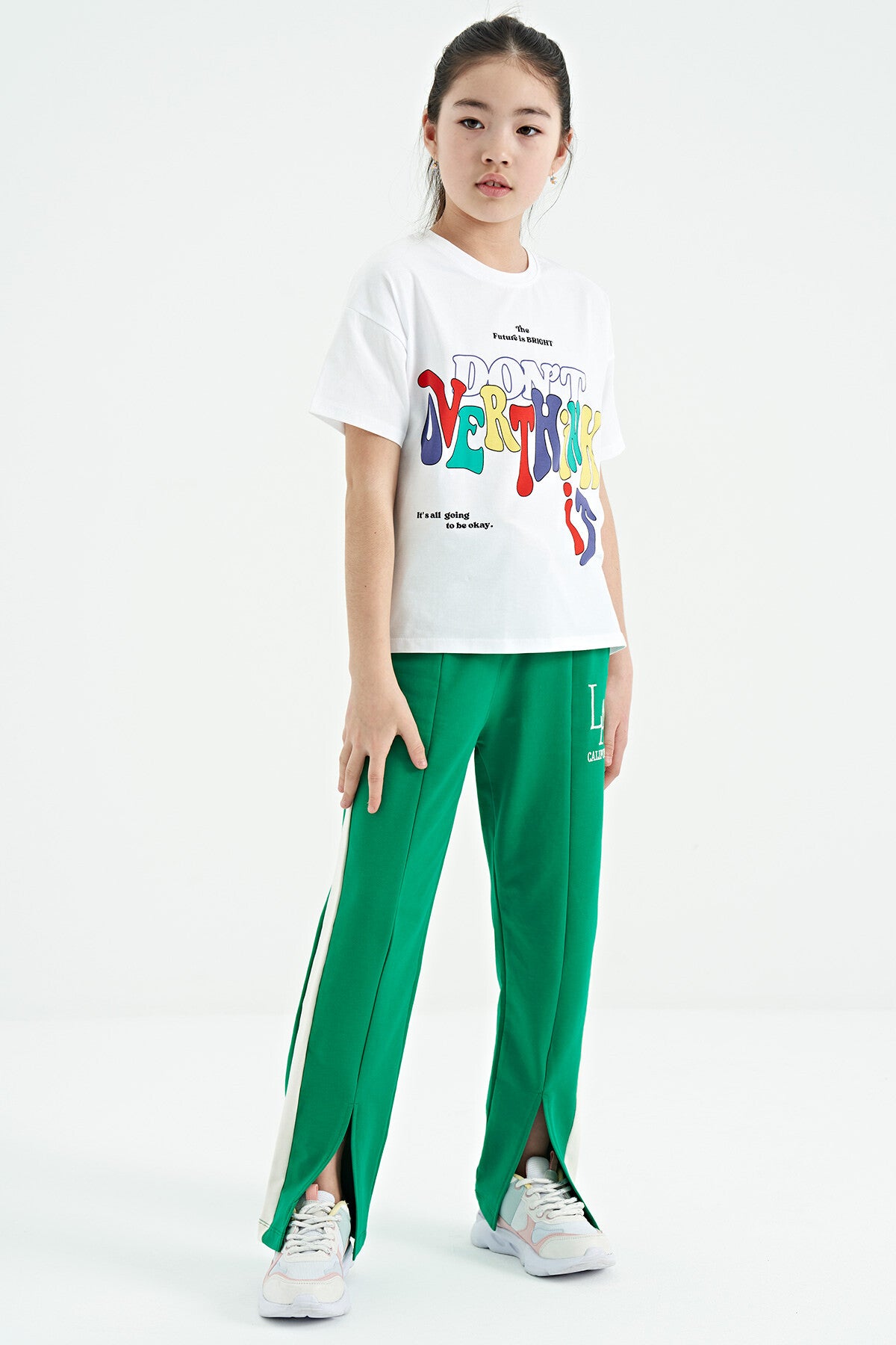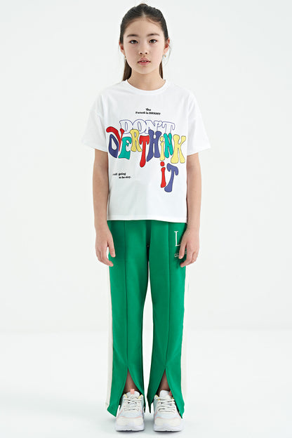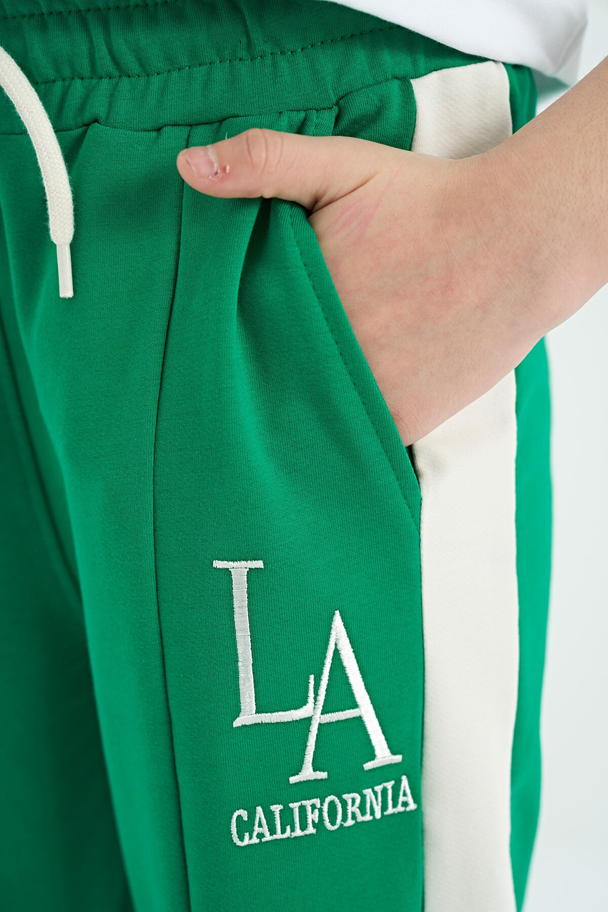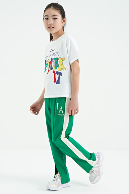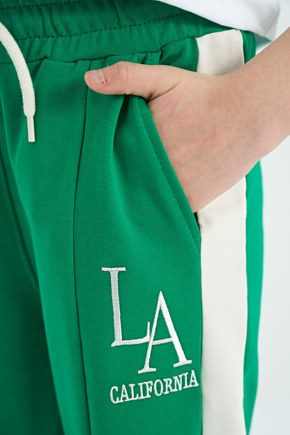 Green Writing Embroidered Detailed Laced Relax Fit Girls Tracksuit Bottom - 75121