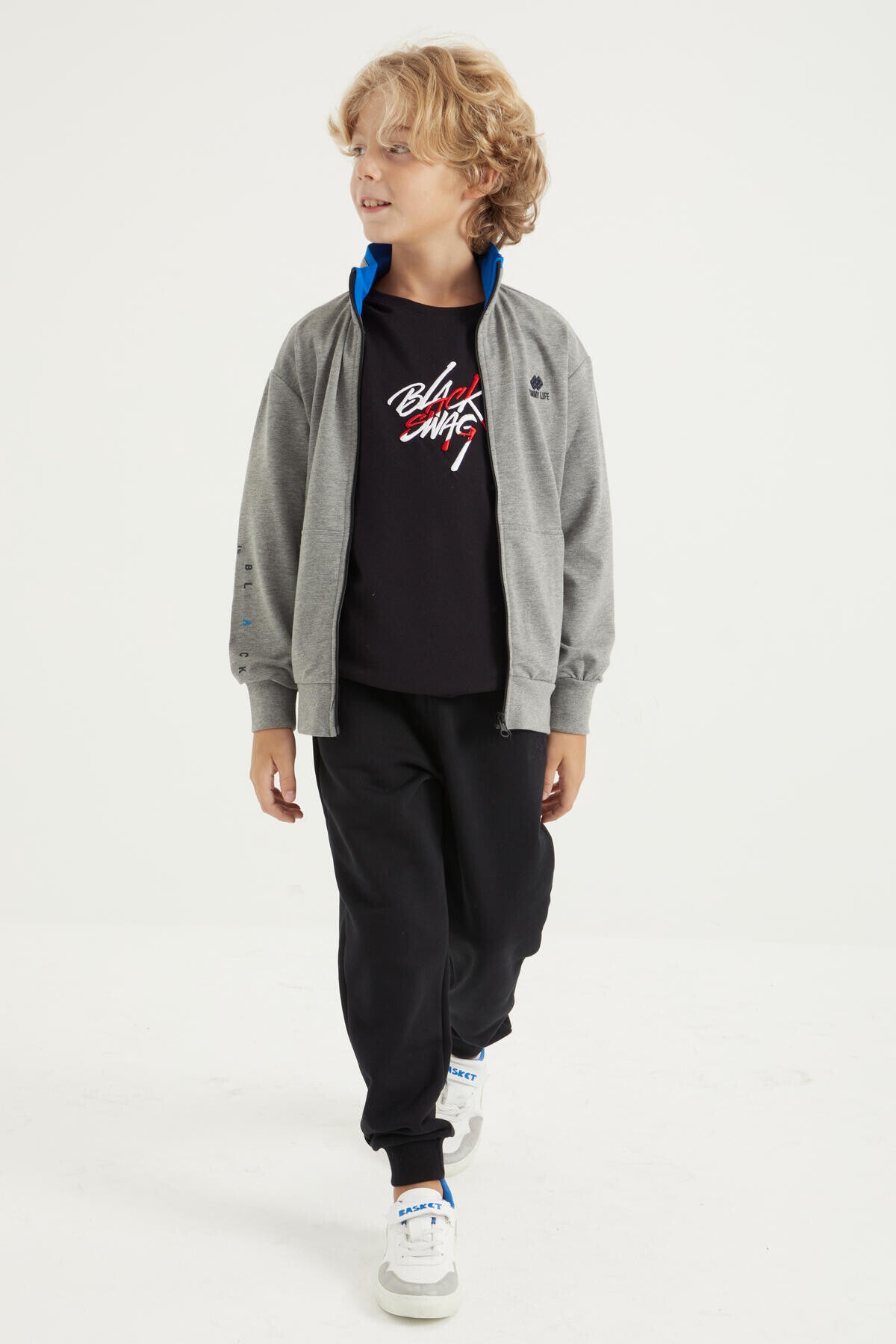 Grey Melange Basic Thick Collar Standard Fit Embroidered Detailed Zippered Men's Sweatshirt - 11012