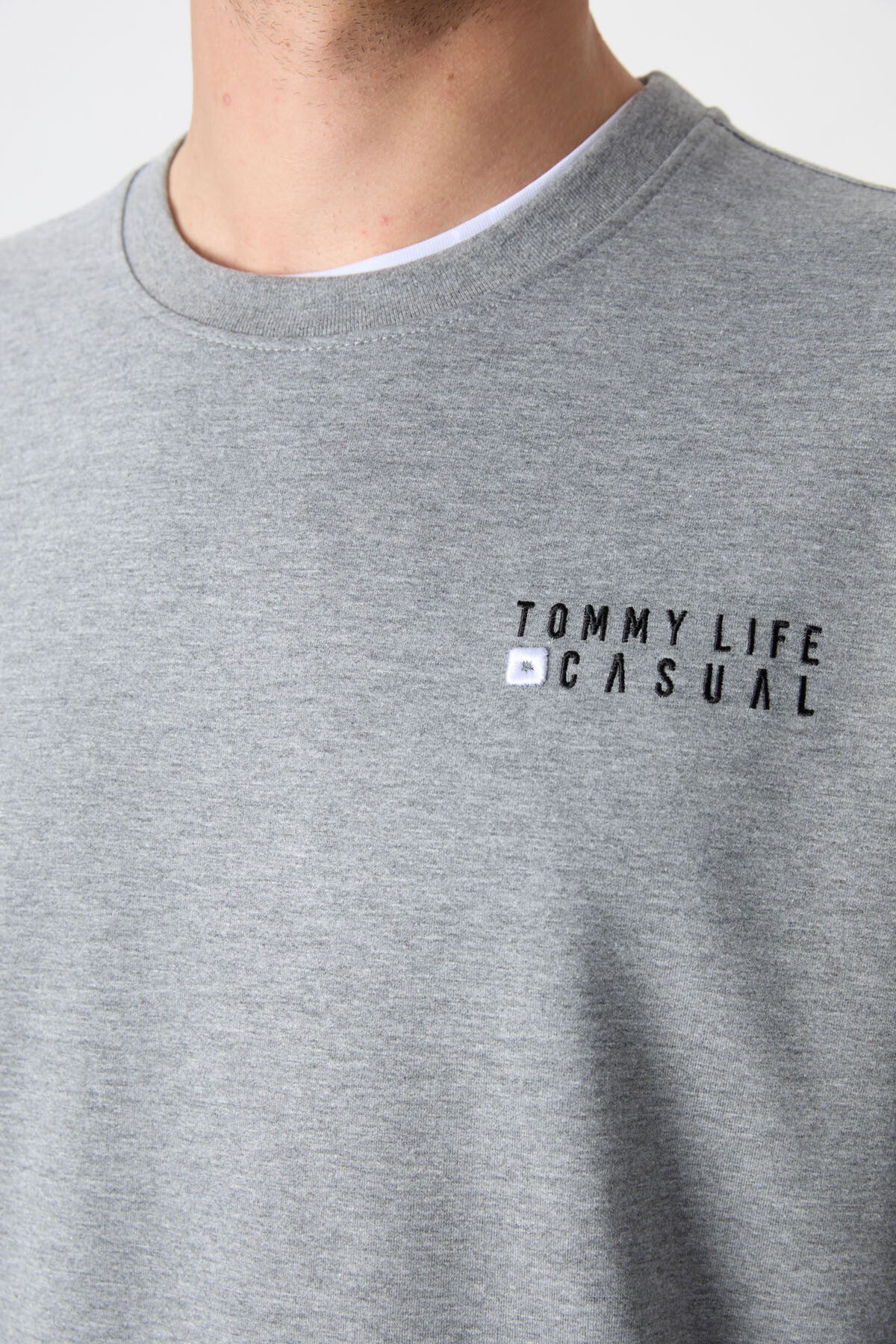 Grey Melange - Black Casual O Neck Elastic Cuffed Cotton Men's Oversize Tracksuit Set - 85120