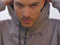 Grey Melange - Black Hooded Kangaroo Pocket Elastic Cuffed Men's Oversize Tracksuit Set - 85117