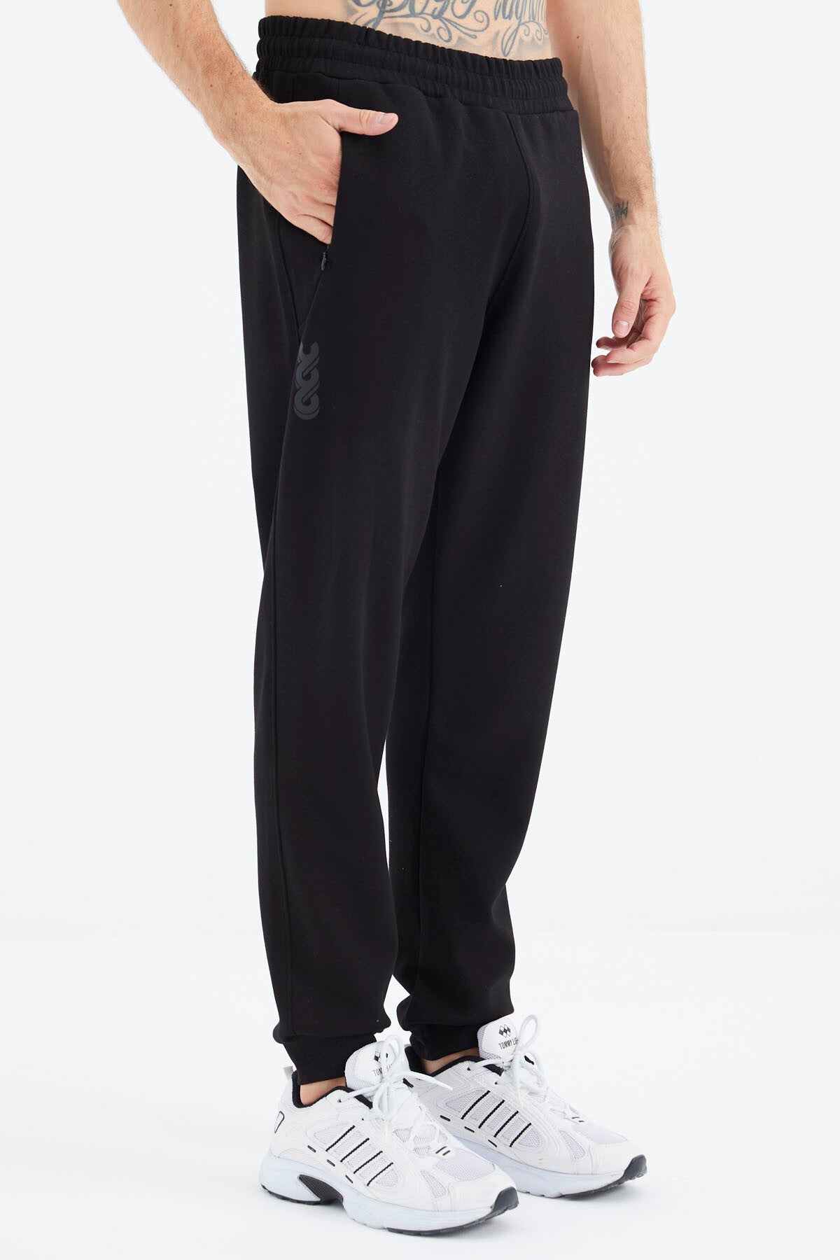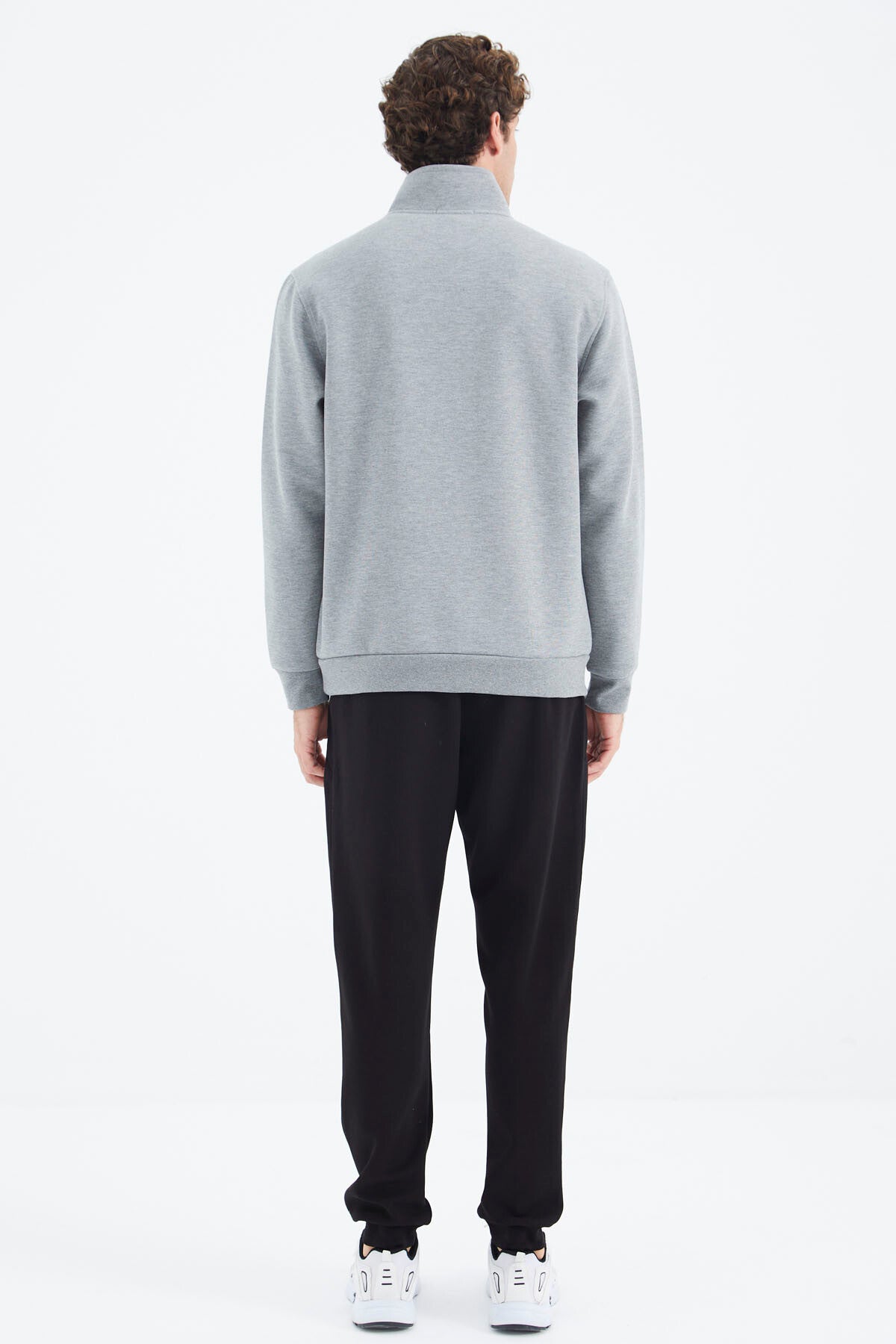 Grey Melange - Black Stand Collar Half Zippered Hidden Pocket Detailed Relax Fit Men's Tracksuit Set - 85221