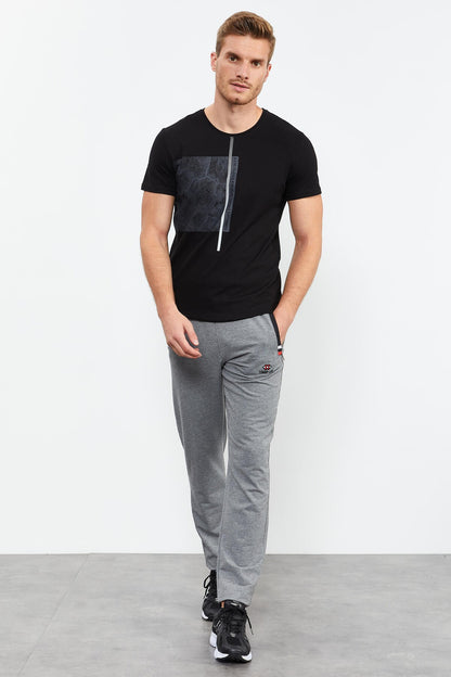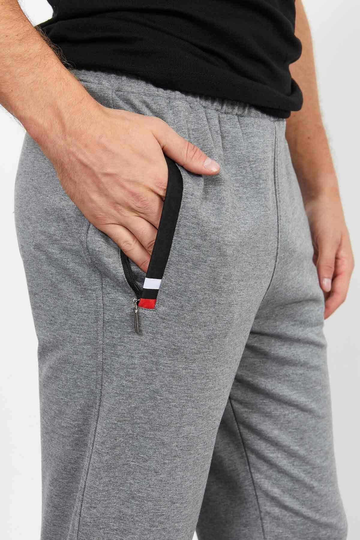 Grey Melange - Black Zippered Pocket Straight Leg Classic Hem Men's Tracksuit Bottom - 84649