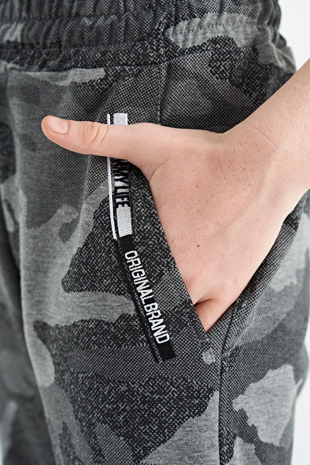 Grey Boys' Camouflage Pattern Zip Pocket Slim Fit Cuffed Tracksuit Bottom - 64053