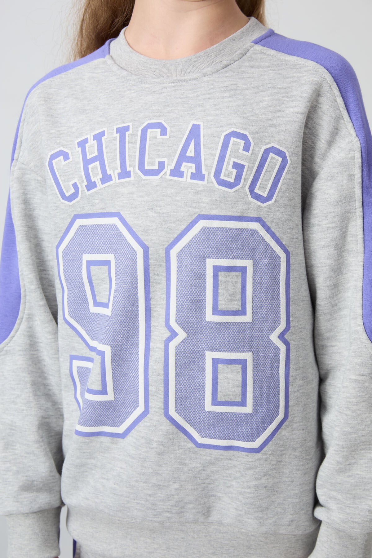 Grey Melange Cotton Fleece-Lined Soft Textured Standard Fit Printed Girls' Tracksuit Set - 75170