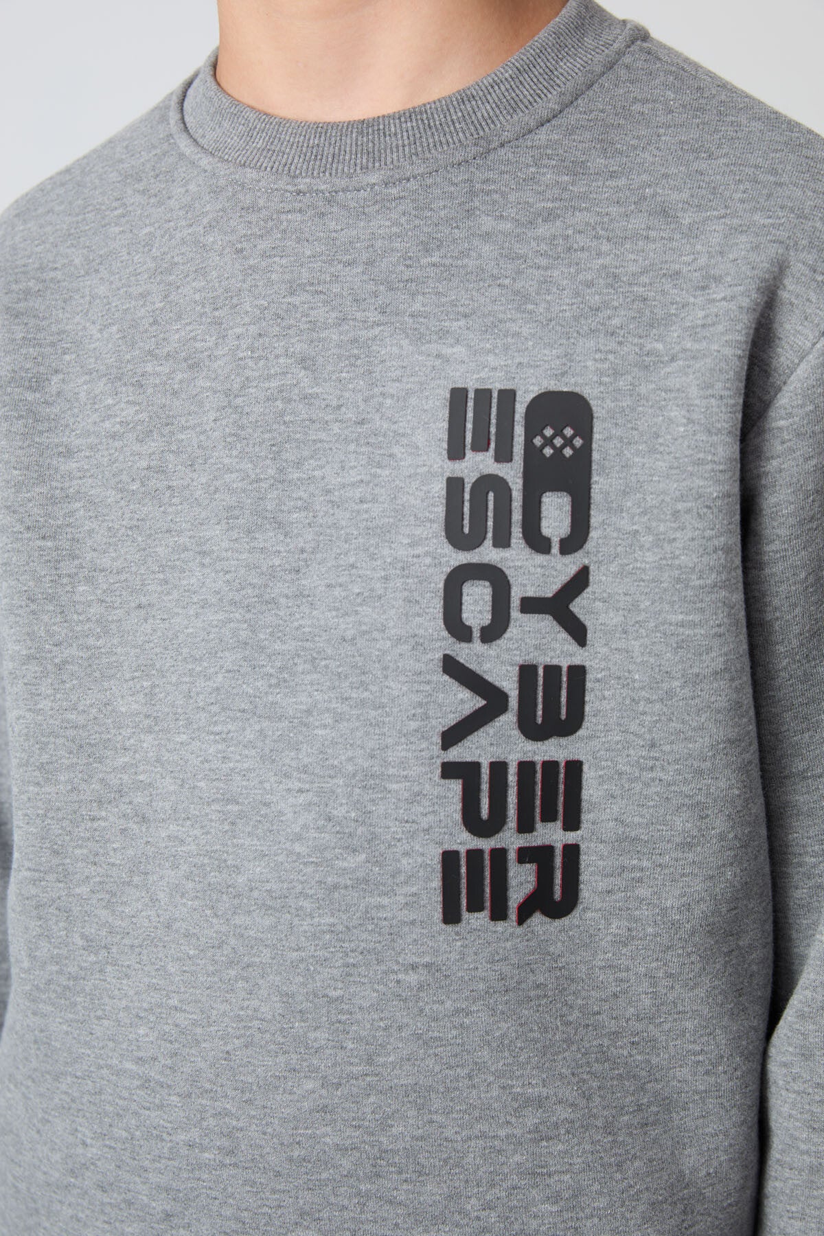 Grey Melange Cotton Thick Fleece-Lined Soft Textured Standard Fit Printed Boys' Tracksuit Set - 11233