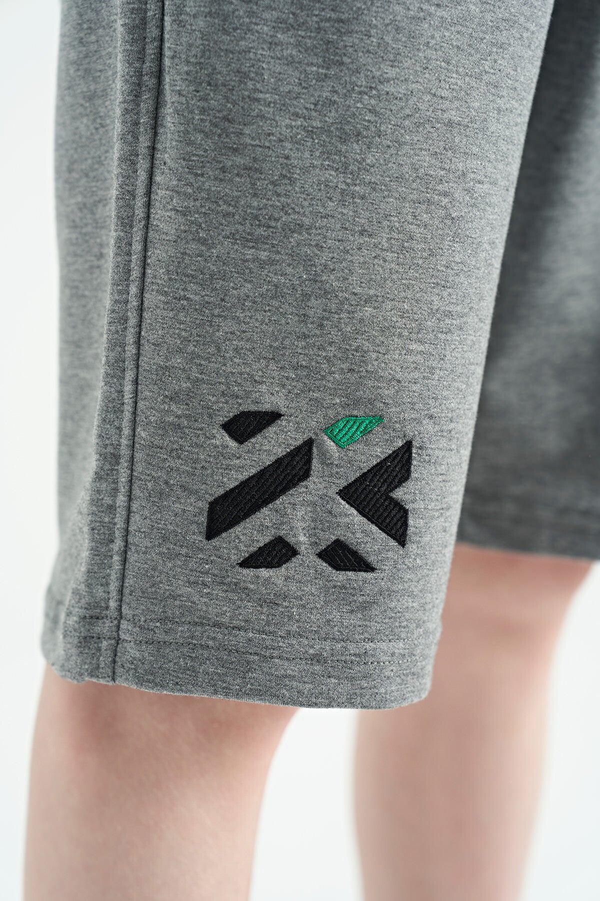 Grey Melange Hidden Pocket Detailed Embroidered Pattern Laced Standard Fit Boys Shorts - 10886