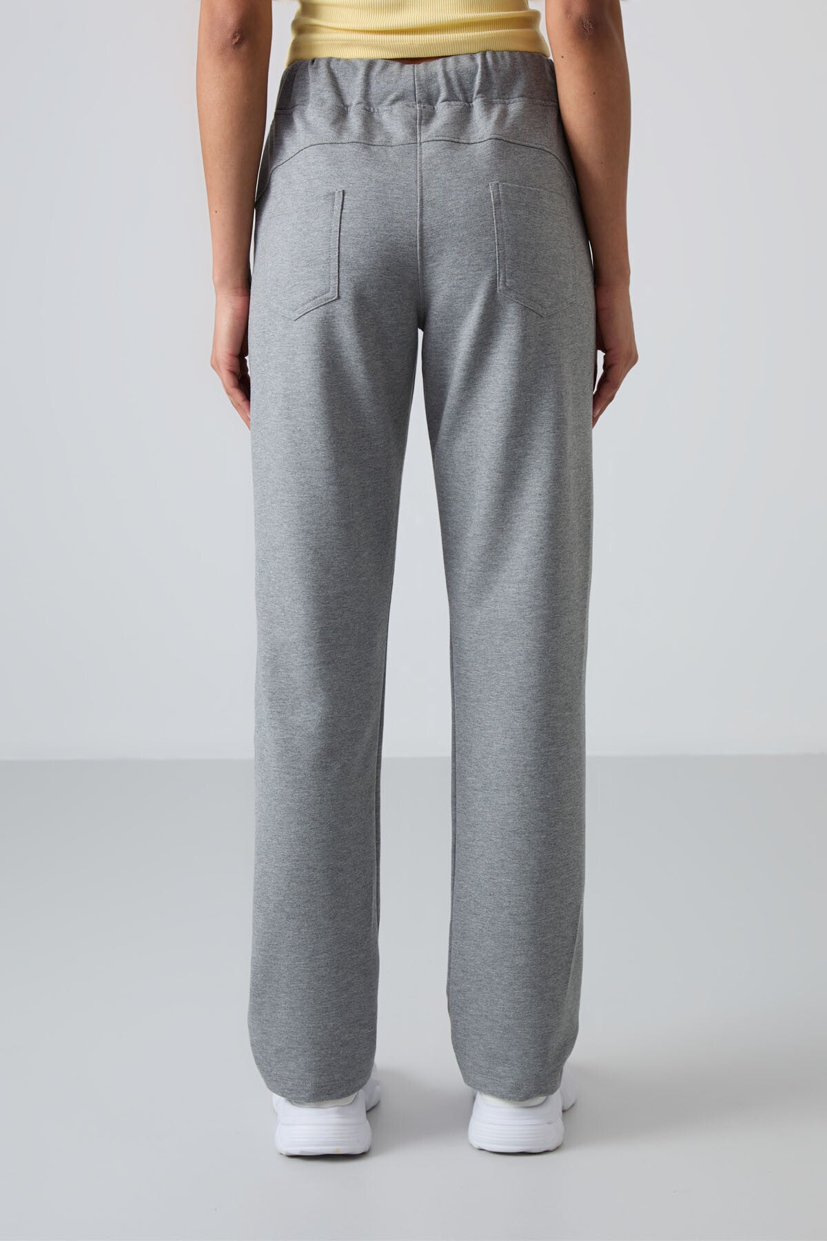 Grey Melange High Waist Comfort Fit Classic Leg Women's Tracksuit Bottom - 94185