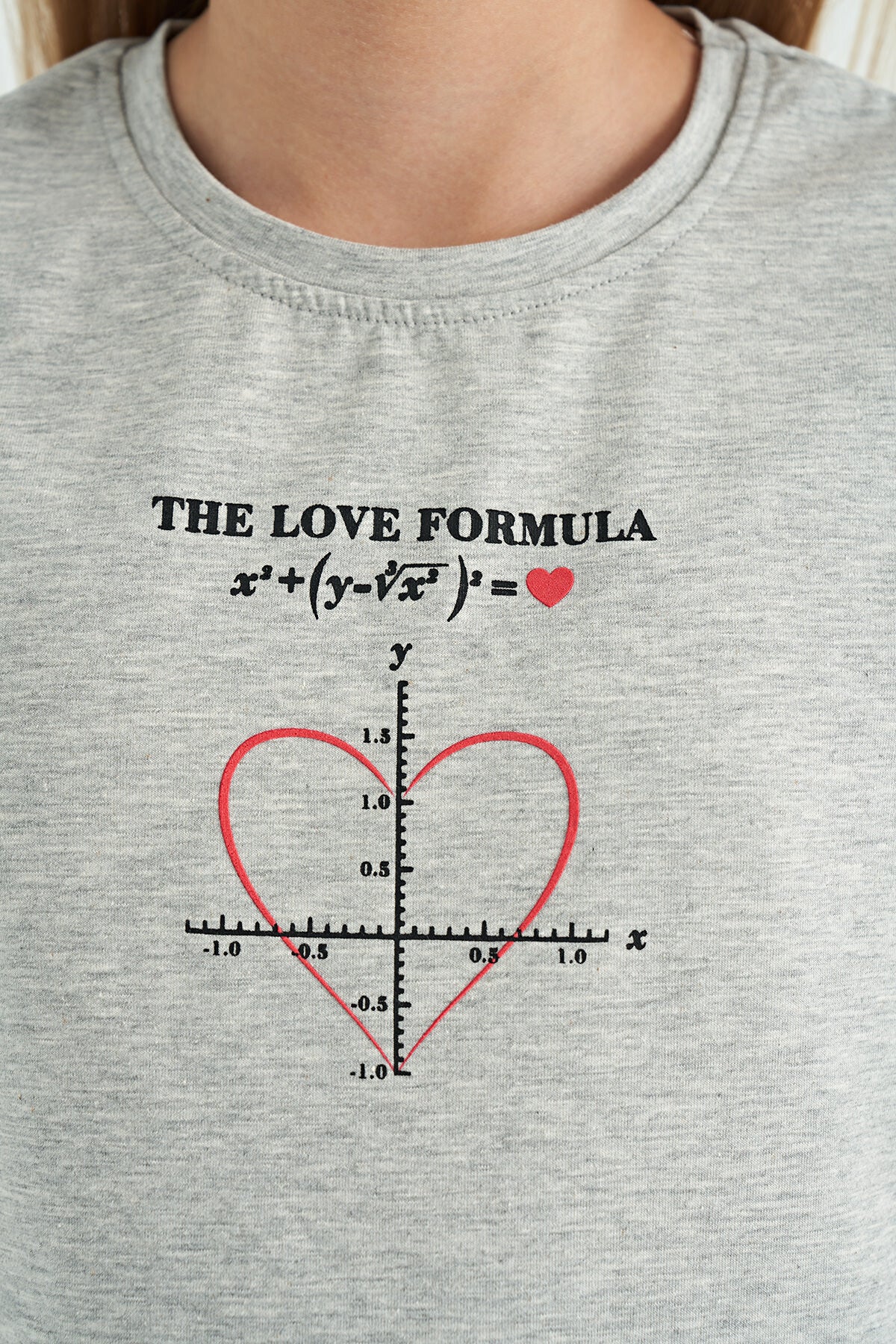 Grey Melange O Collar Print Detailed Relax Fit Girls T-Shirt - 75129